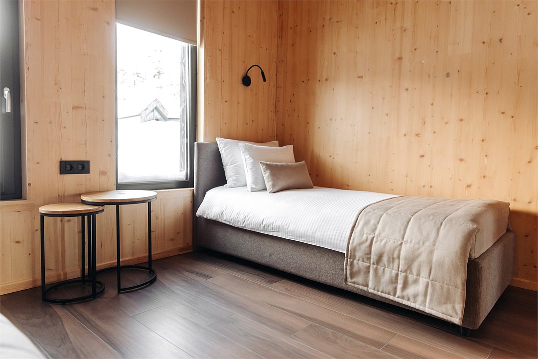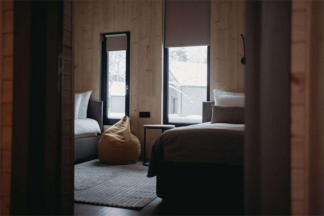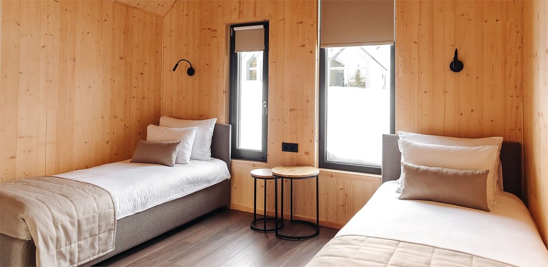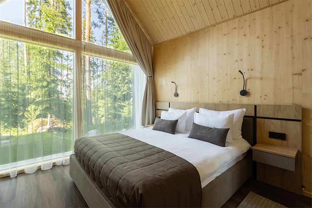 Вариант размещения подходит для компаний или семей с детьми старше 5 лет. Двухэтажная вилла площадью 144 кв.м. с тремя изолированными спальнями, просторной кухней-гостиной с камином, а также дополнительной зоной отдыха на втором этаже с панорамным окном - удобные кресла с кофейным столиком позволят с комфортом любоваться живописным видом на лес и озеро. На вилле предусмотрен отдельный вход и терраса, также смотрящая на озеро. Уникальной особенность виллы является персональный чан на живом огне, расположенный на террасе летней кухни. Обращаем ваше внимание, что необходим предварительный заказ растопки чана минимум за 5 часов до сеанса по телефону +7 812 56 56 444 - услуга предоставляется комплиментарно. На вилле вы найдете все, что нужно для действительно комфортного проживания: удобная мебель, две односпальные кровати в одной спальне и две спальни с двуспальной кроватью, 2 просторные ванные комнаты с душевой кабиной, полотенцами и феном, 2 телевизора, персональный сейф. Уникальный микроклимат виллы поддерживают увлажнители в каждой спальне.Услуги и удобства