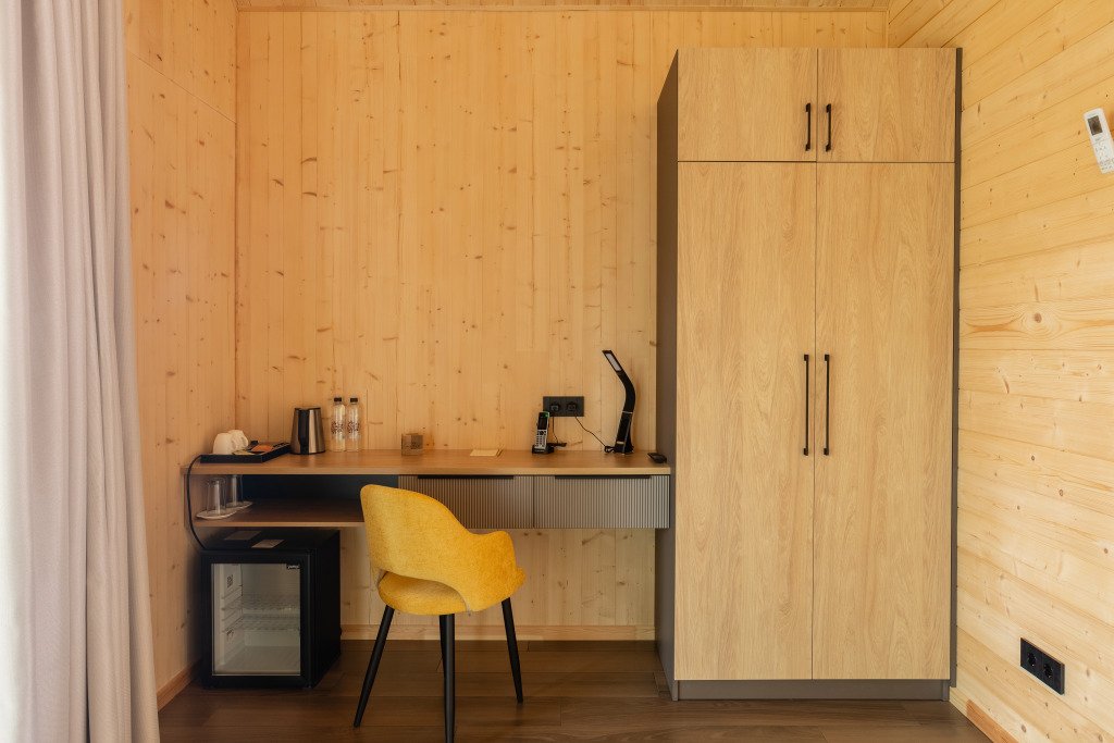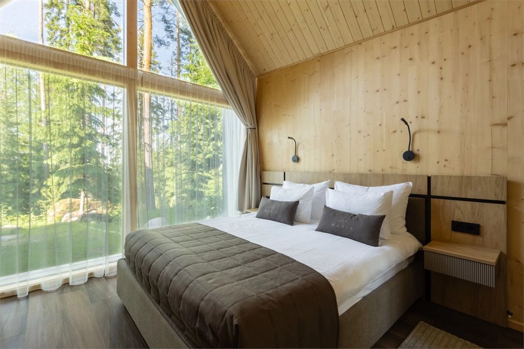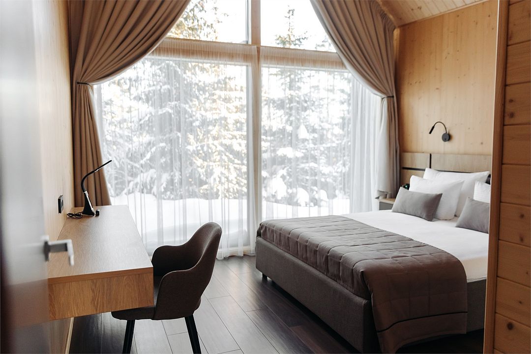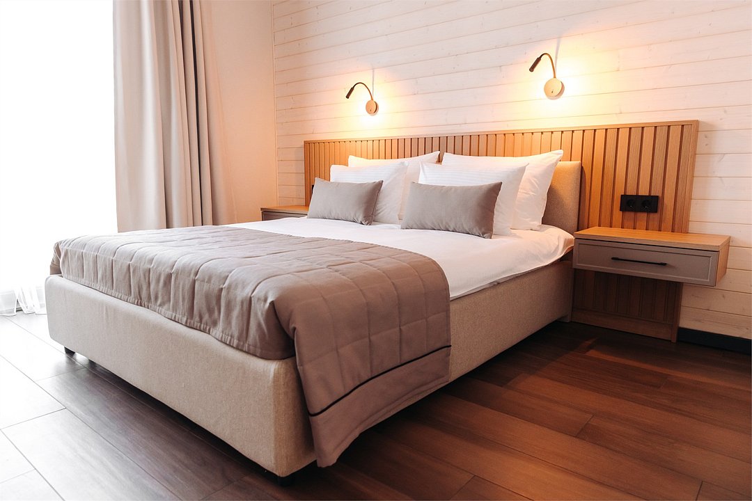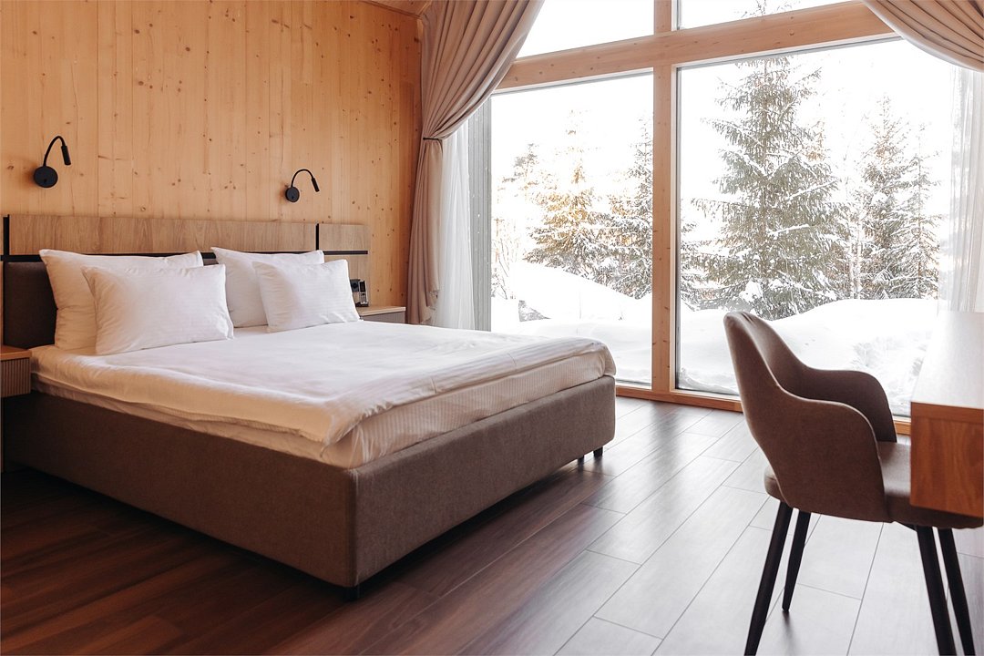 Wi-Fi, светильник, фен, электронные замки, кофемашина, микроволновая печь, утюг, ванная комната, халаты, тапочки, гигиенические средства, косметические средства, терраса, двуспальная кровать, две односпальные или большая двуспальная кровать, гладильная доска, диван, кресла, стулья, шкаф для одежды, журнальный столик, обеденный стол, зеркало, звуконепроницаемые стены и окна, сейф, мягкая мебель, косметическое зеркало, обеденная зона, отдельный вход в номер, душ, две спальни, высокие потолки, меню подушек, кухонная посуда, стаканы, столовые приборы, кофейный столик, тумба, туалетные средства, панорамные окна, внутренний телефон, мини-холодильник, телевизор со Smart TV, вид на лес, пуфик, рабочий стол, чайная станция, фумигатор, вешалки-плечики, бутилированная вода, шапочка для душа, зеркало в полный рост, прачечная (за дополнительную плату), не раскладной диван, без питомцевВ номере
