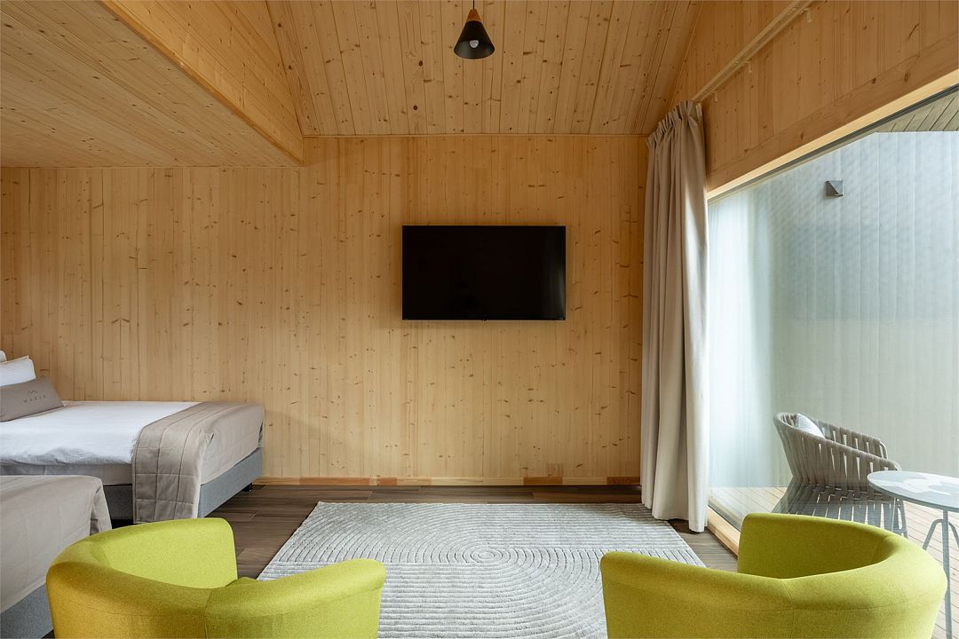 Аква-термальный комплекс курорта — место, где можно расслабиться в плавательном бассейне, насладиться гидромассажем или посетить термальную зону с финской сауной, турецким хамамом под звездным небом, снежной машиной и двумя джакузи, откуда открывается потрясающий панорамный вид на озеро.