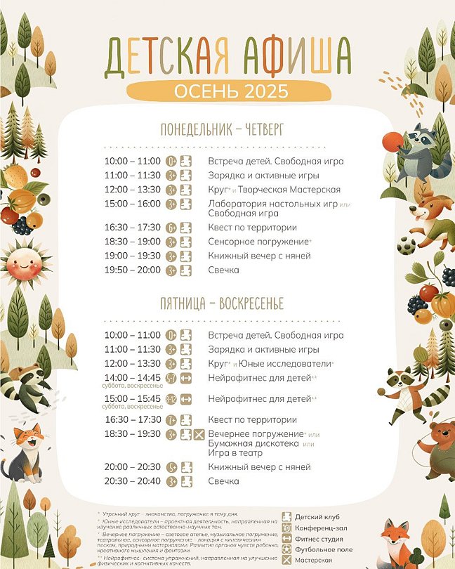 - посещение детского клуба (творческая мастерская оплачивается отдельно).