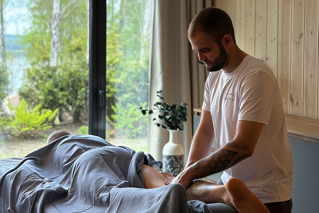 Два уютных кабинета с панорамными окнами, выходящими на Суходольское озеро, создают спокойную атмосферу для сеансов массажа. Многолетний опыт и высокая квалификация массажистов гарантируют комфорт и персонализированный подход к каждому гостю.