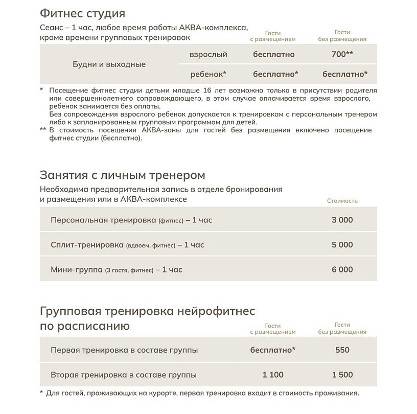 - Возможно проживание с детьми с раннего возраста. Допускается размещение детей до 6 лет без предоставления отдельного спального места (в зависимости от выбранного варианта проживания).