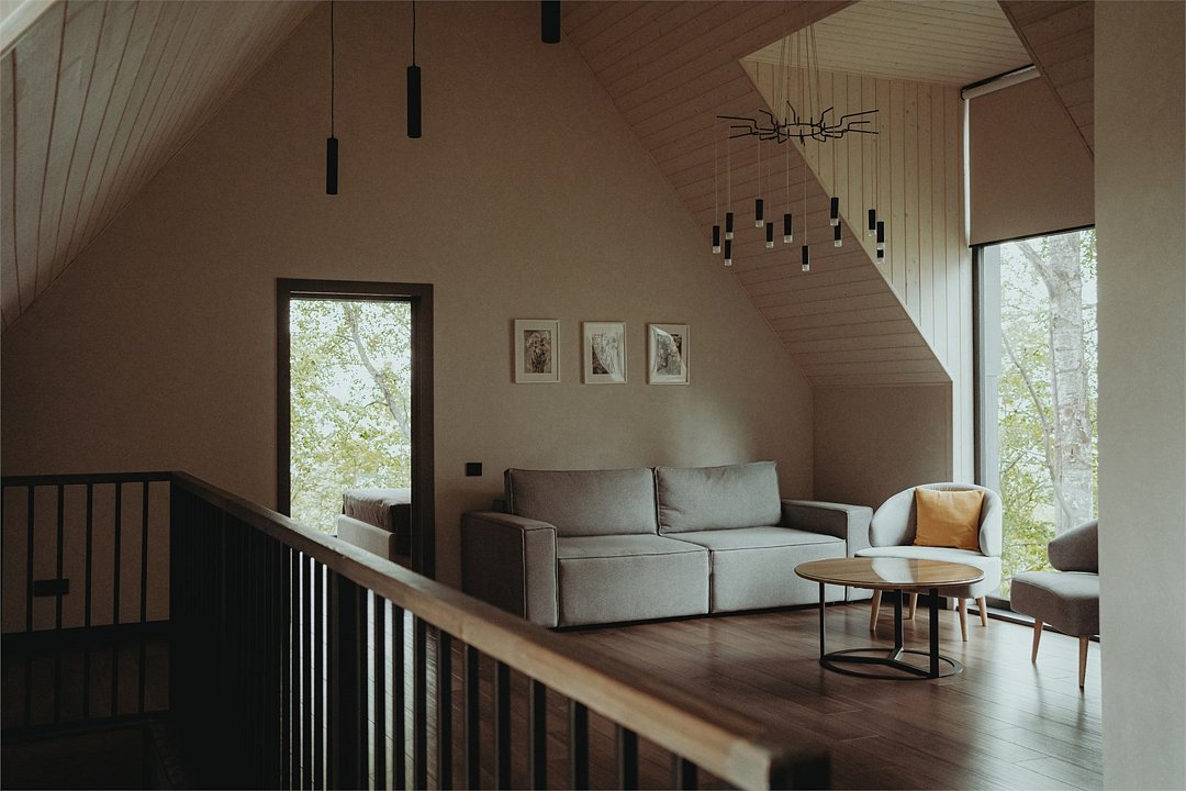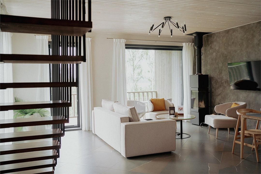 Многоуровневая вилла-студия с понижающимся полом и панорамным остеклением, невероятно высокими потолками и продуманным скандинавским дизайном станет отличным местом для романтического уикенда или уединенного отдыха.Услуги и удобства