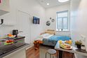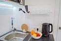 В апартаментах имеется полностью оборудованная кухня с обеденным столом и собственная ванная комната с душем, тапочками и феном. Телевизор с плоским экраном подключен к спутниковым каналам. В числе прочих удобств микроволновая печь, холодильник, плита и чайник.