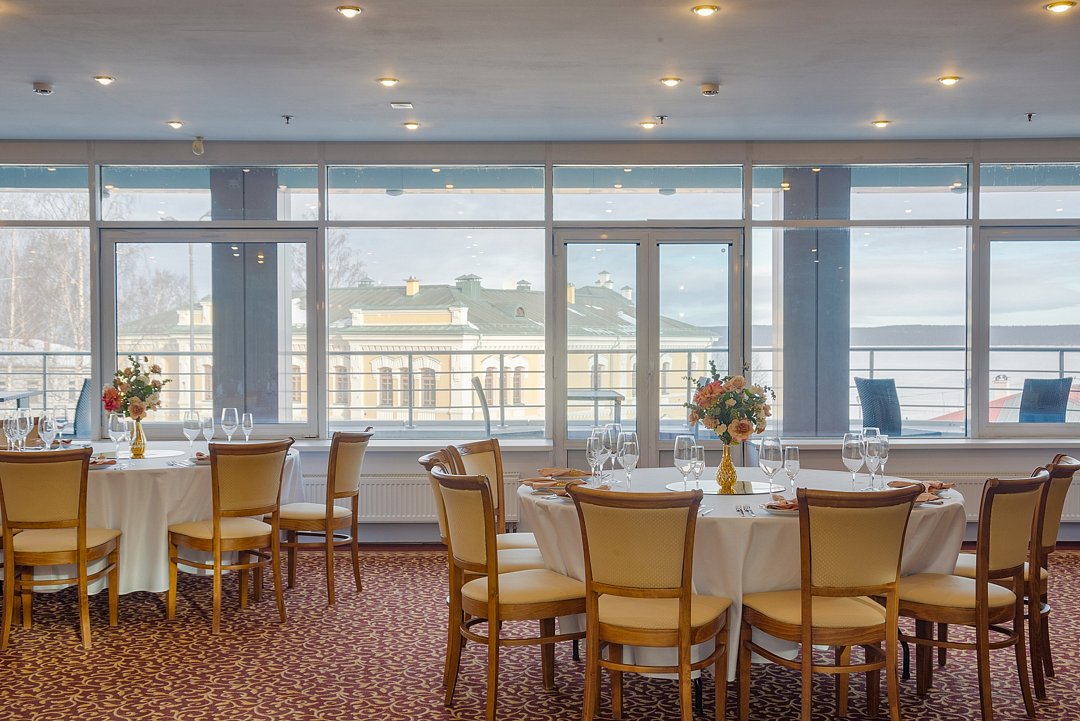 Просторный зал Бульвар с естественным светом и живописным видом на Онежское озеро расположен на 2-ом этаже отеля. Идеально подходит для проведения семейных торжеств, свадеб или корпоративных фуршетов. В тёплое время года открыт выход на балкон.