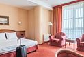 Просторный номер со светлой спальней и лоджией. Двуспальная кровать с ортопедическим матрасом и меню подушек, телевизор, сейф для ценных вещей, а также 2 больших кресла для отдыха.