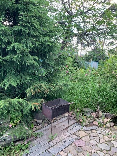 В доме есть спальня, рассчитана на 4 человека, кухня и веранда. На веранде при желании может разместиться ещё один человек. Есть газовая плита, чайник, холодильник, печка, туалет находится на улице. Также на участке есть мангальная зона.