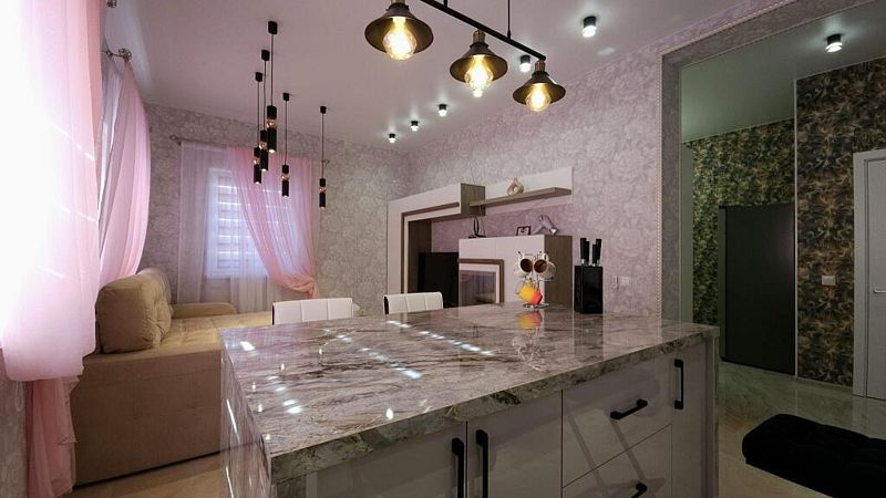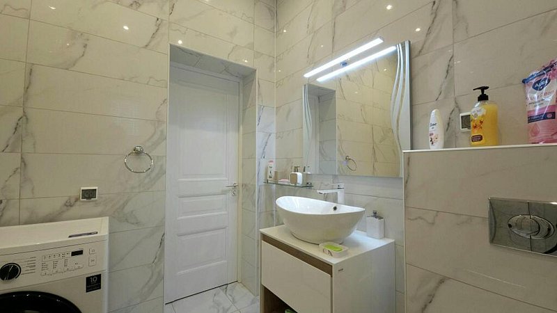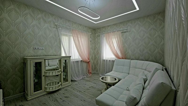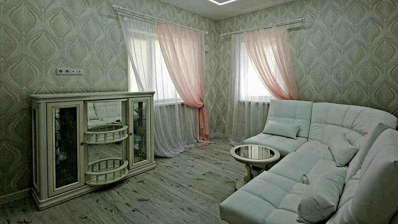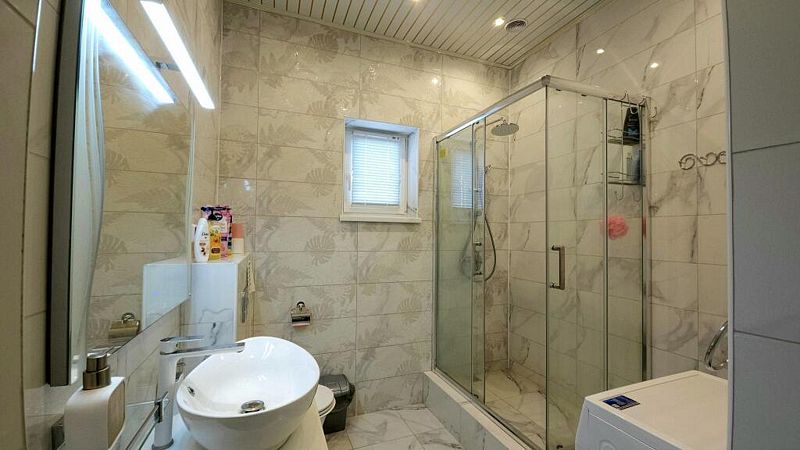 Одноэтажный дом с тремя комнатами оборудован всем необходимым для комфортного проживания. На современной кухне вы сможете приготовить или разогреть себе еду.