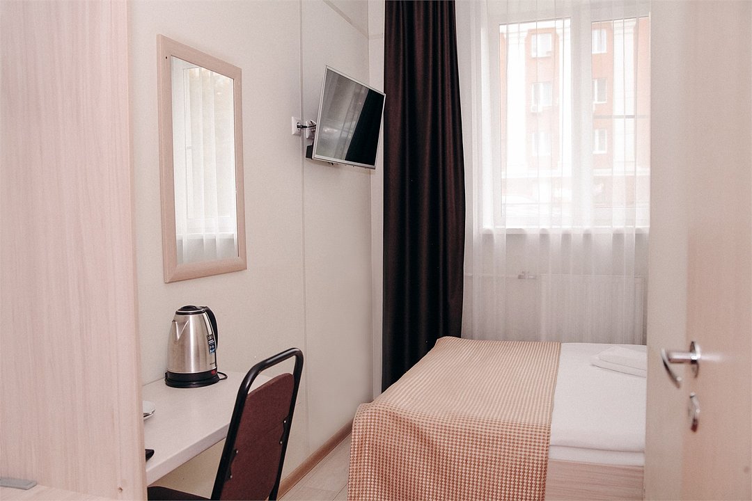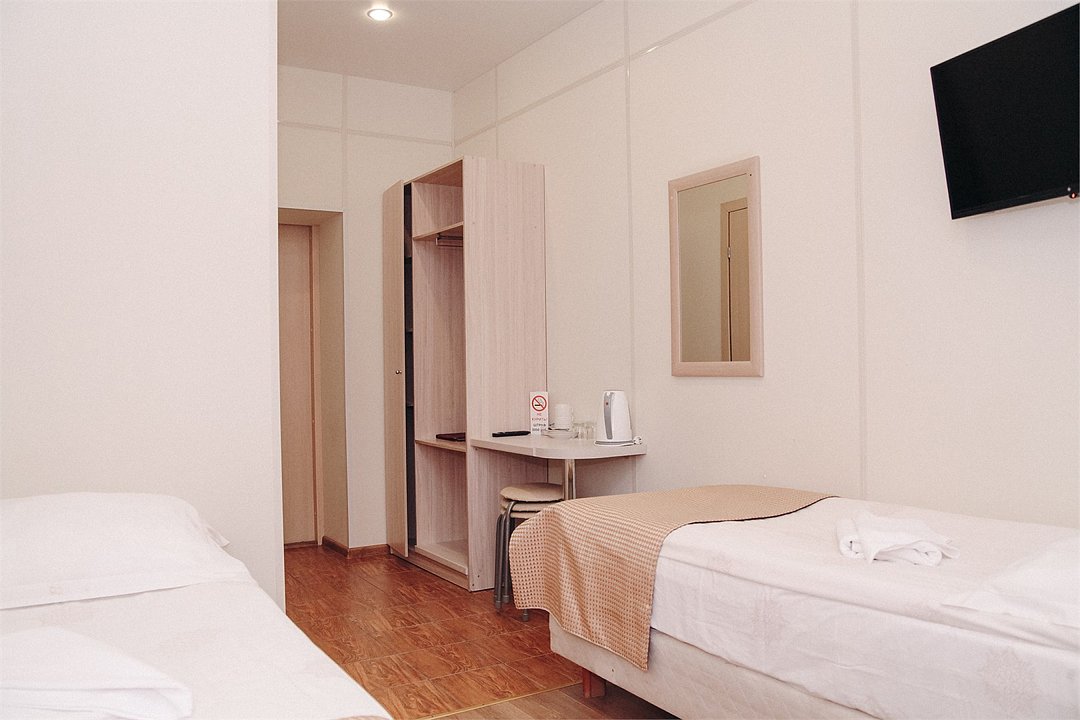 февр. 2020 г.Нормальный отельОстанавливались в трехместном номере, в целом все хорошо, если не придираться)))) Великолепное расположение, ж.д. вокзал в сотне метров, автовокзал в 5-ти минутах ходьбы. Номера небольшие, есть стол, электрочайник, шкаф для верхней одежды с платяным отделением.