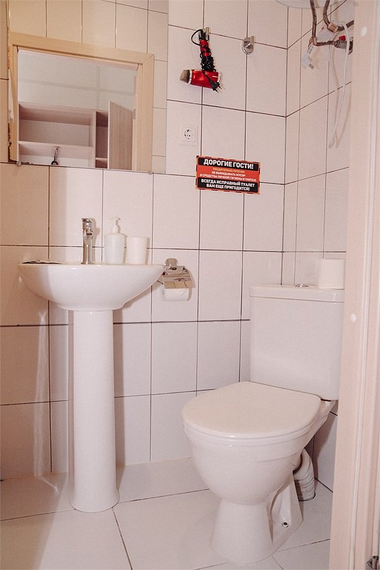 Для нас было важно, что санузел, несмотря на тесноту, в номере. Есть фен, туалетные принадлежности, освежитель воздуха. Душевая кабина у нас довольно заметно протекала, остальное было в порядке.