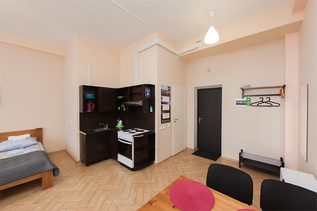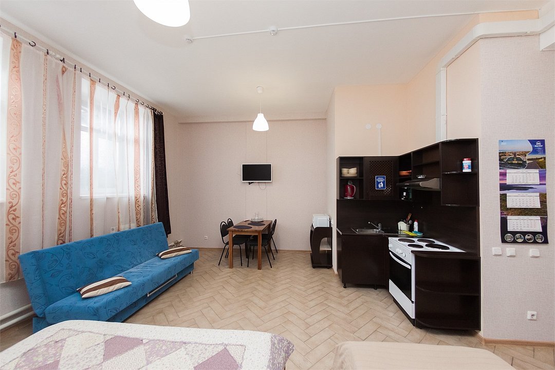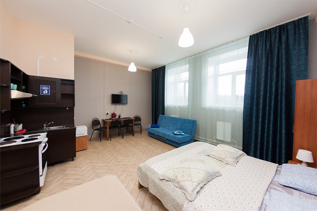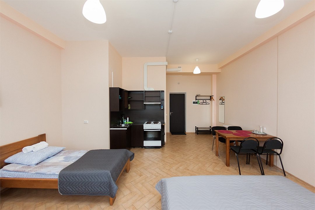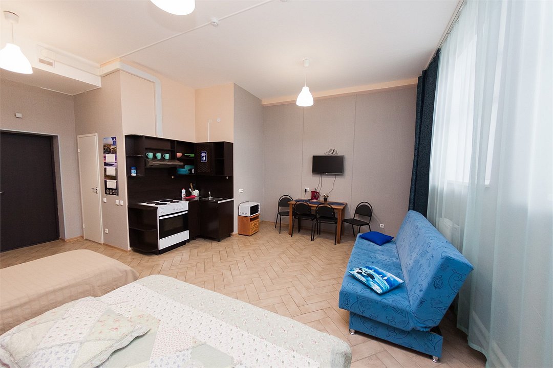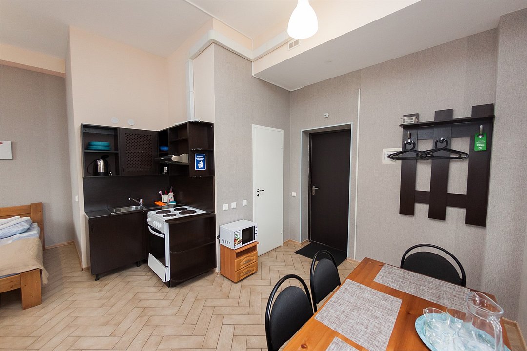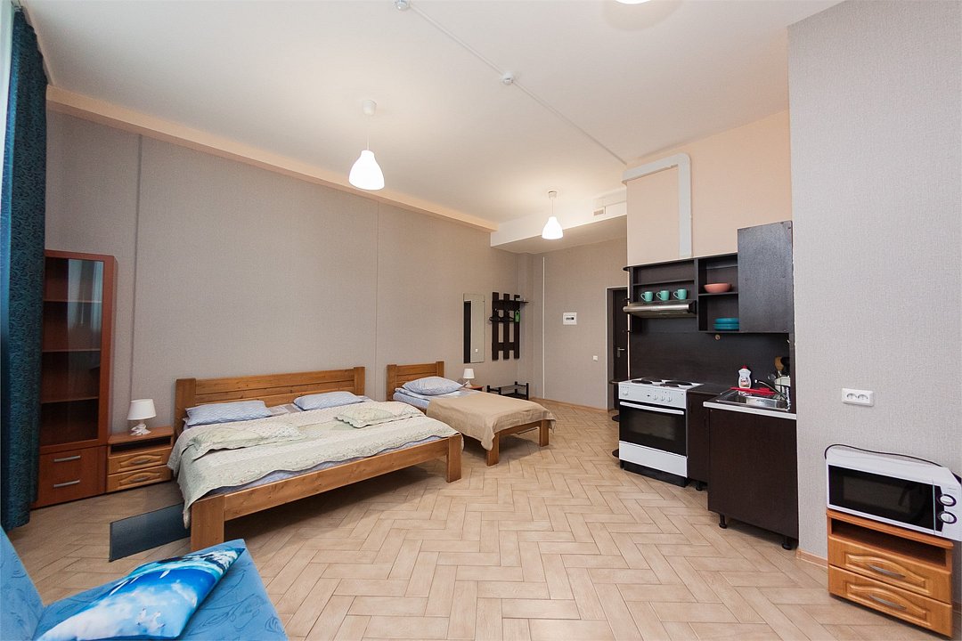 Номер 36 м.кв .Кухня в номере. Одна большая кровать (1800*2000), диван-книжка,микроволновая печь, мини -кухня,телевизор, туалет и душевая в номере.Услуги и удобства