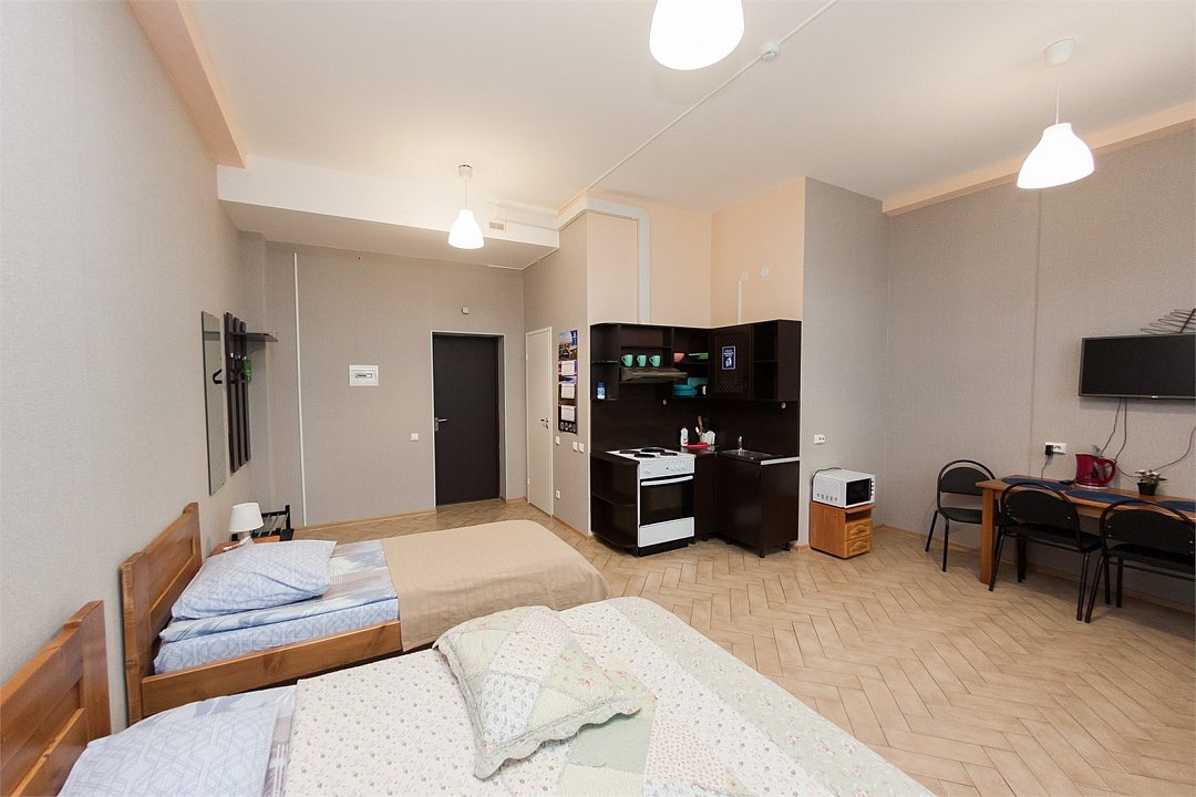 Номер 36 м.кв. 3 кровати (900*2000), мини -кухня,телевизор, туалет и душевая в номере.Услуги и удобства
