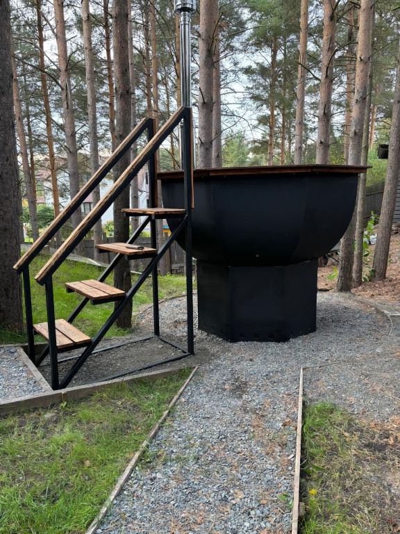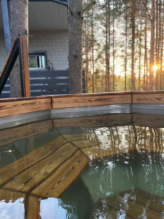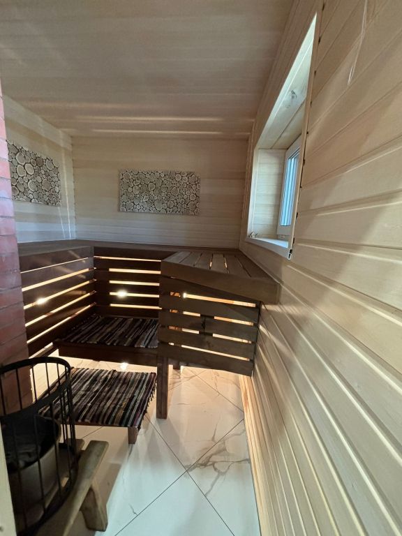 За дополнительную плату гостям доступны дровяная баня, находящаяся в доме и имеющая выход на террасу, и банный чан на территории.