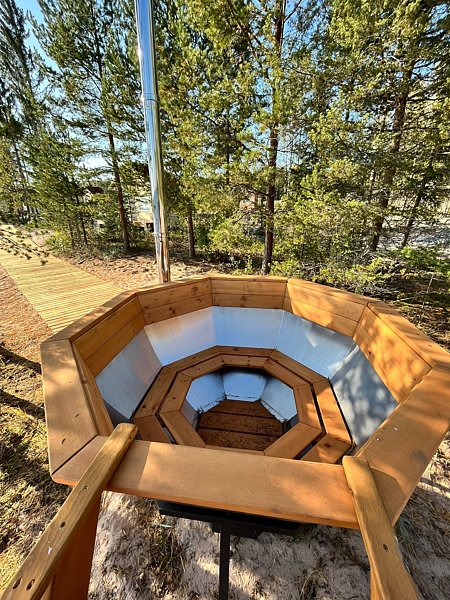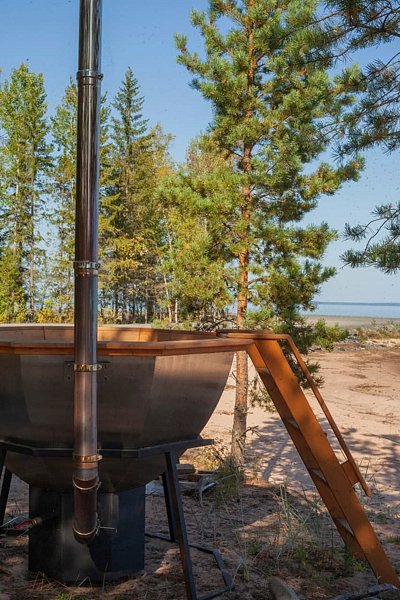 Окунитесь в мир комфорта и уюта, арендуя наш уникальный банный чан, расположенный на живописном берегу Онежского озера. Этот просторный чан вмещает до 6 человек, что делает его идеальным для дружеских встреч, семейных праздников или романтических уикендов.
