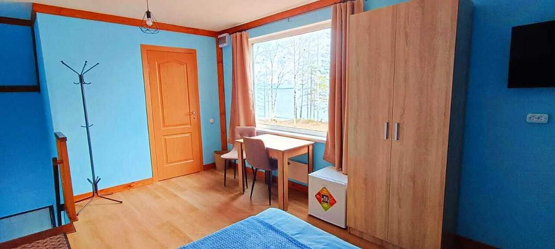 Номер "Дабл" - это одна комната в трехкомнатном домике. Уютный номер на первом этаже на берегу Онежского озера. Идеально подходит для размещения одного или двух человек. Из окон открываются живописные виды на озеро и карельскую природу.