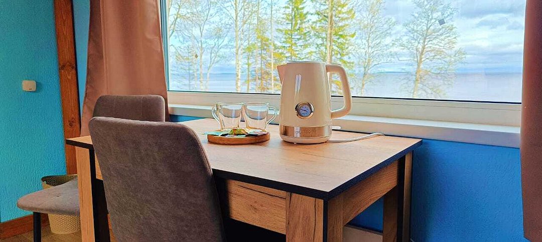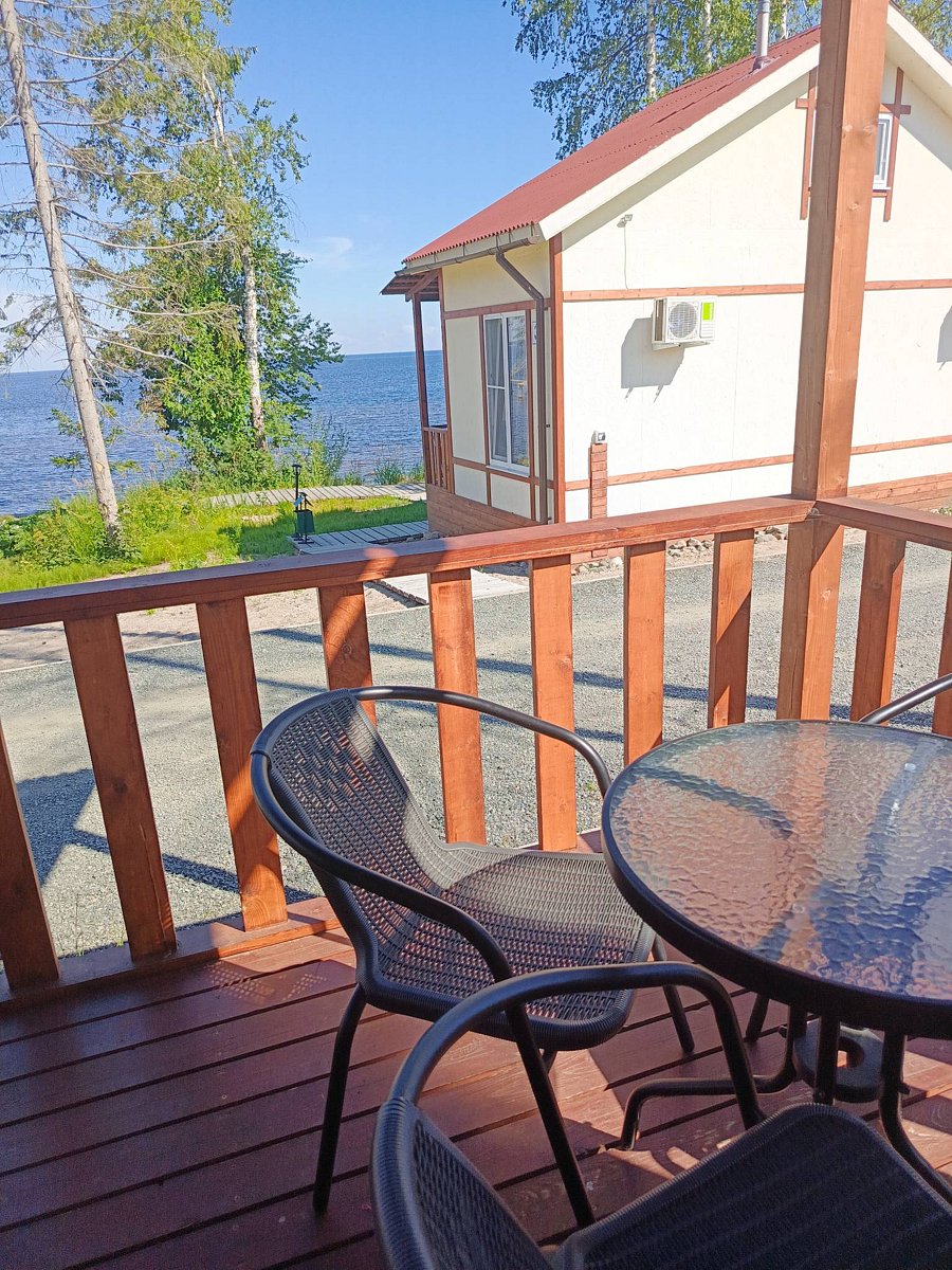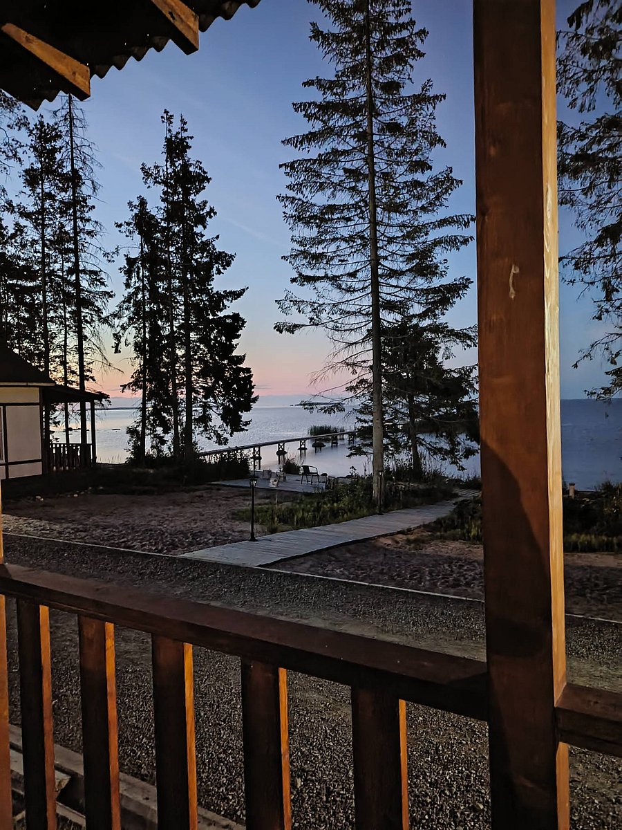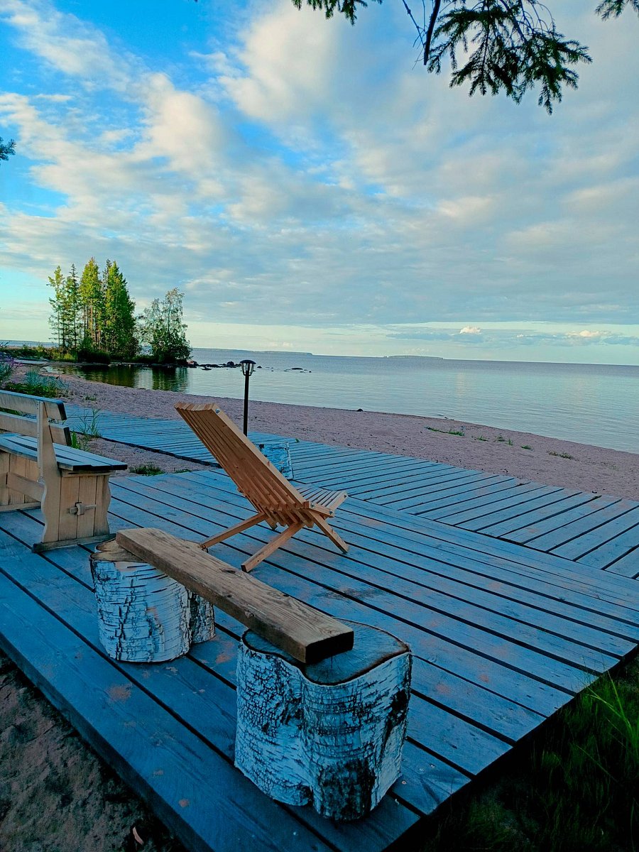 Уютный номер Джуниор сюит - 1 расположен на 1 этаже комфортабельного двухэтажного домика на берегу Онежского озера. Панорамное окно, шикарные виды на озеро и крытая меблированная терраса придают особый шарм и дарят неизгладимые впечатления. Номер идеально подойдёт для комфортного проживания небольшой семьи из 2-х или 3-х человек (при заказе доп. места). Если у вас семья побольше, то почти всегда можно заказать еще один номер на втором этаже.