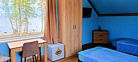 Для вашего удобства в номере имеются две односпальные либо одна двуспальная кровать (по вашему желанию), шкаф для одежды, комод, прикроватные тумбочки, стол, 2 стула, вешалка, чайник, холодильник, вентилятор, отдельный санузел с душевой кабиной и феном. На территории нашей базы организована охраняемая парковка. Из больших окон номера открываются прекрасные виды на озеро, лес и окрестности, позволяя наслаждаться природой в любое время года.