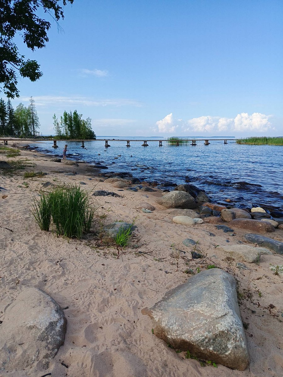 Из окон номеров открываются незабываемые пейзажи Онежского озера. Номера первой линии расположены прямо возле песчаного пляжа, где вы сможете наслаждаться отдыхом под шум прибоя и пение ветра.