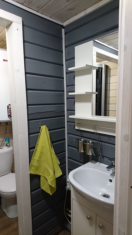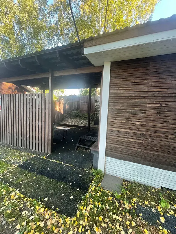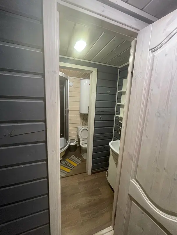 Деревянный домик с собственным душем и туалетом, отдельным входом и внутренним двориком