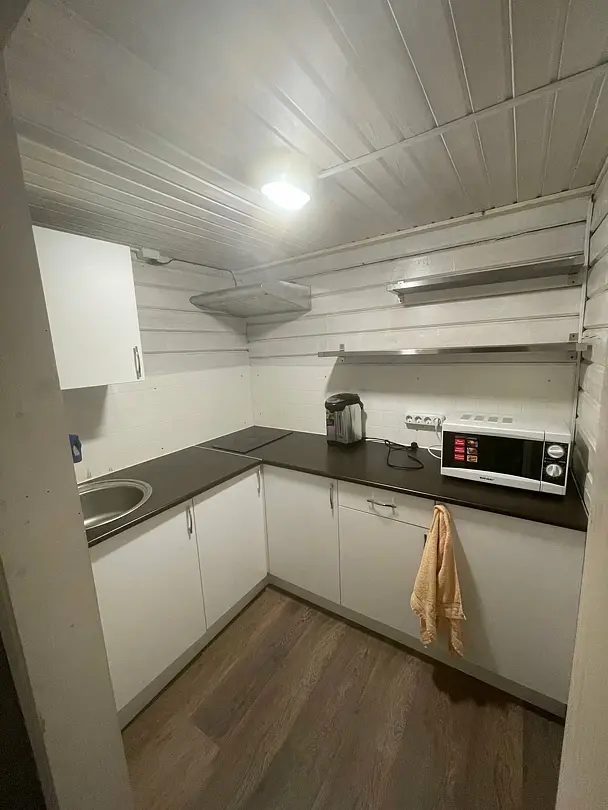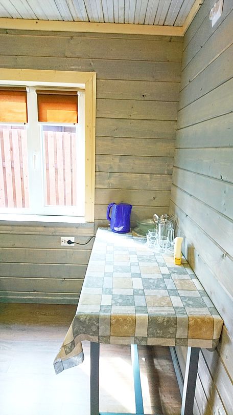 В домике полностью оборудованная кухня для приготовления пищи, вытяжка, микроволновка, электрический чайник.