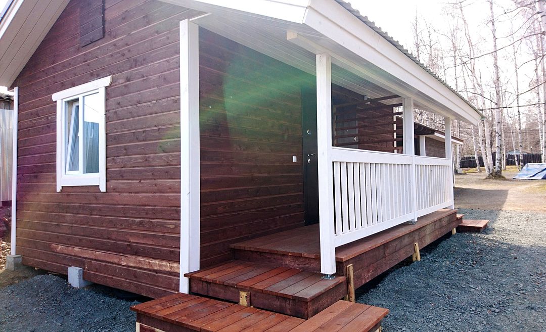 Проживание в номере, расположенном в деревянном домике со вторым таким же номером с отдельным входом.