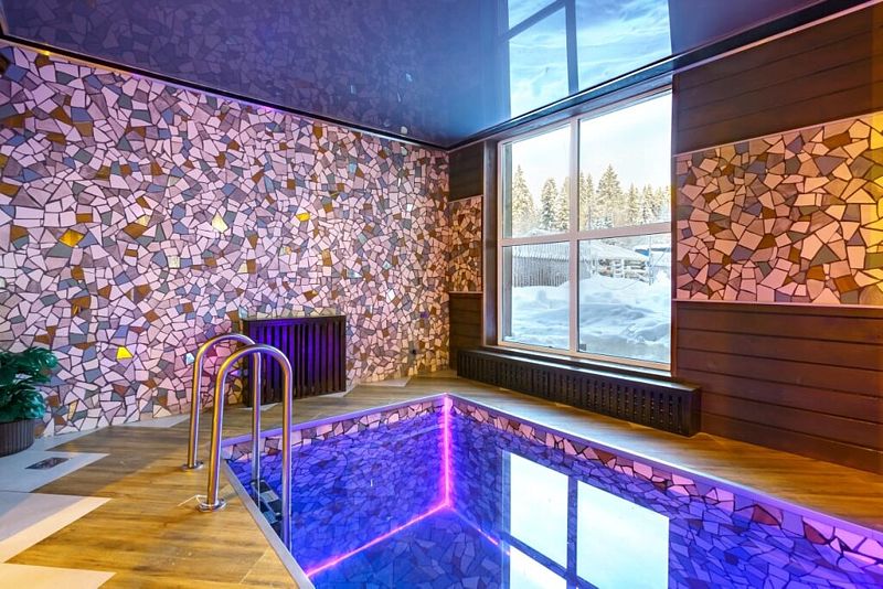 Инфраструктура: бассейн, чан, зона отдыха, полотенца, шапочки, душМинимальное время аренды: 4 часаБаня "Русская" на дровах на большую компанию до 10 человек.