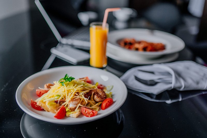 В каждом номере отеля представлено меню обслуживания, которое позволяет вам наслаждаться блюдами и напитками, не покидая свою комнату. Гостям доступна возможность заказать завтрак с 06:00 – 12:00, а полное меню доступно для заказа с 12:00 – 06:00.