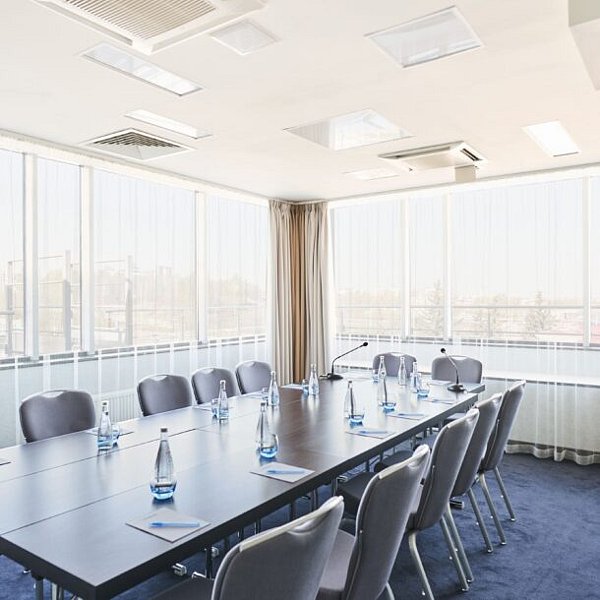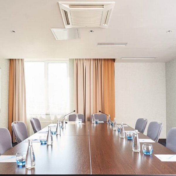 На шестом этаже отеля располагается конференц-зона, которая предлагает идеальные условия для проведения мероприятий различного формата. Гостям доступны два конференц-зала и четыре переговорные комнаты, что позволяет организовать как крупные собрания, так и более уединенные встречи. Просторные помещения с панорамными окнами создают комфортную атмосферу для работы, а светлое фойе идеально подходит для кофе-брейков и фуршетов.