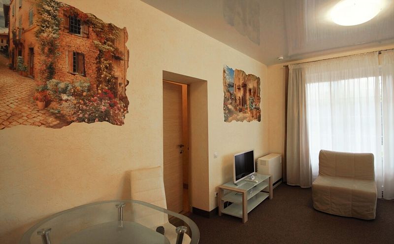 Гостевой дом предлагает для размещения 10 номеров. В каждом номере: ванная комната, телевизор, Wi-Fi, полы с подогревом и фен.
