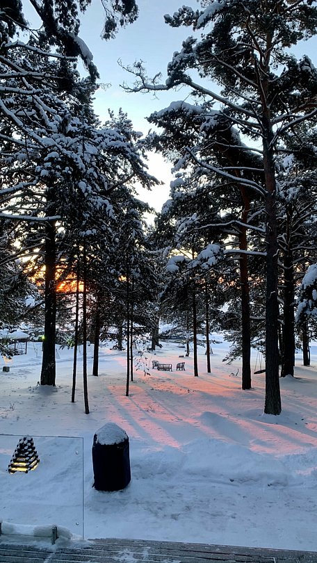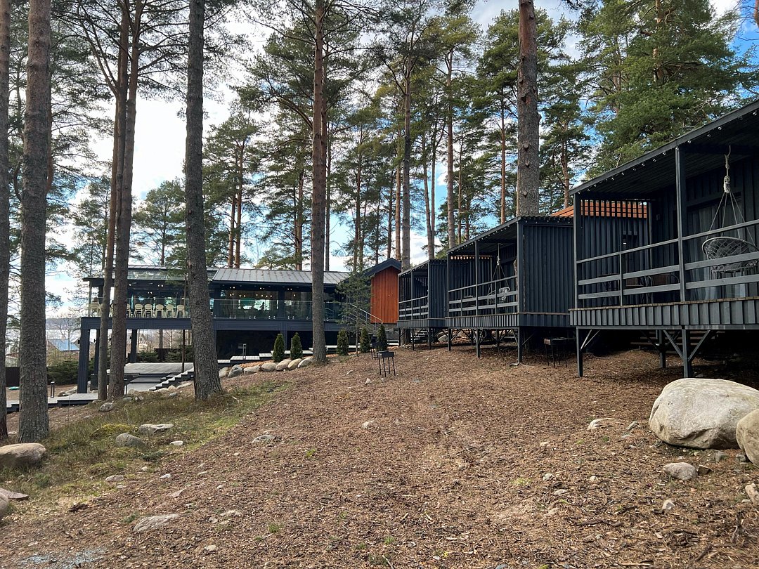 О местоположении: домики находятся на берегу Онежского озера, территория небольшая, вся в соснах, закрытая, но если выйти за не пределы уже начинается лес, ботанический сад и много экотроп, прогуляться есть где. Расположение недалеко от города, на такси от вокзала доехали за минут 25.