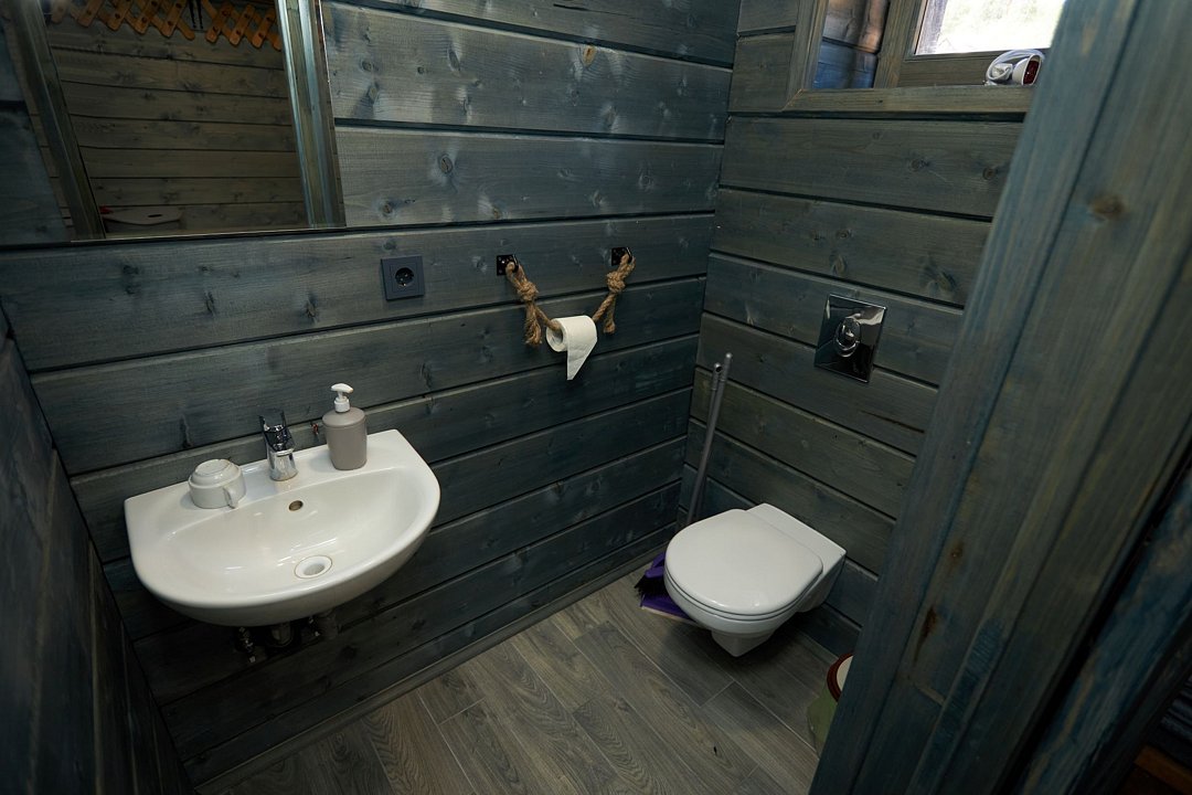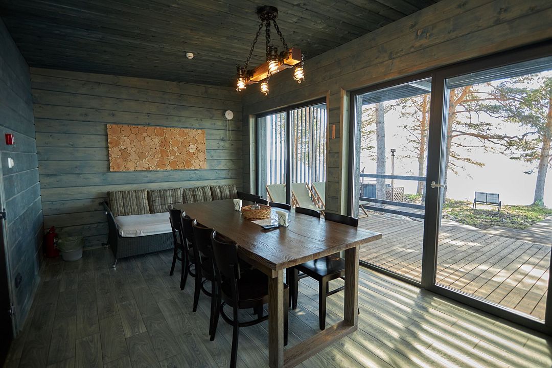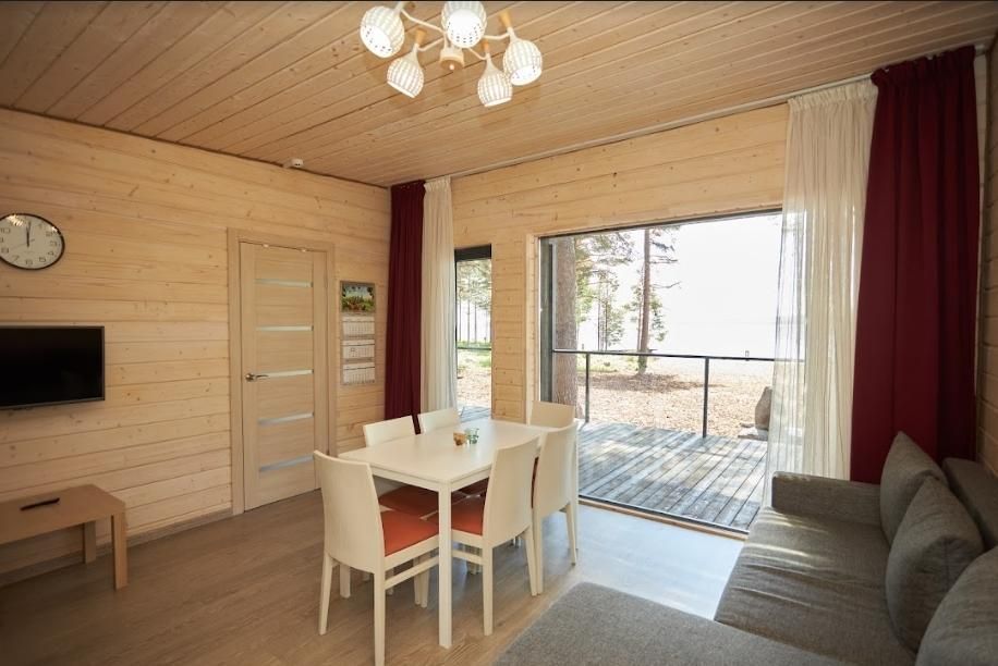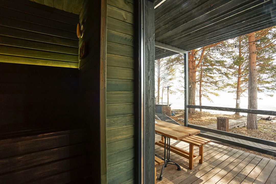 Комфортный дом категории «Комфорт с сауной» 32 м², с видом на Онежское озеро. Домики на второй береговой линии, до 200 метров от берега, рядом с рестораном.