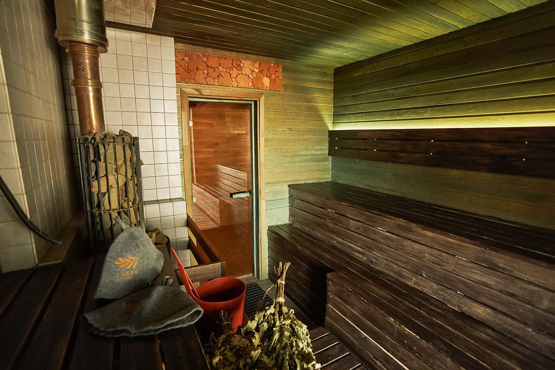 Инфраструктура: душТемпература парения: 60–70 °CНа первой и второй береговых линиях «Taleo Home» расположены уютные домики «Комфорт с сауной», которые предлагают гостям уникальную возможность отдохнуть и расслабиться. Каждый домик данной категории оборудован небольшой электрической сауной, что создает идеальные условия для отдыха после активного дня на свежем воздухе.