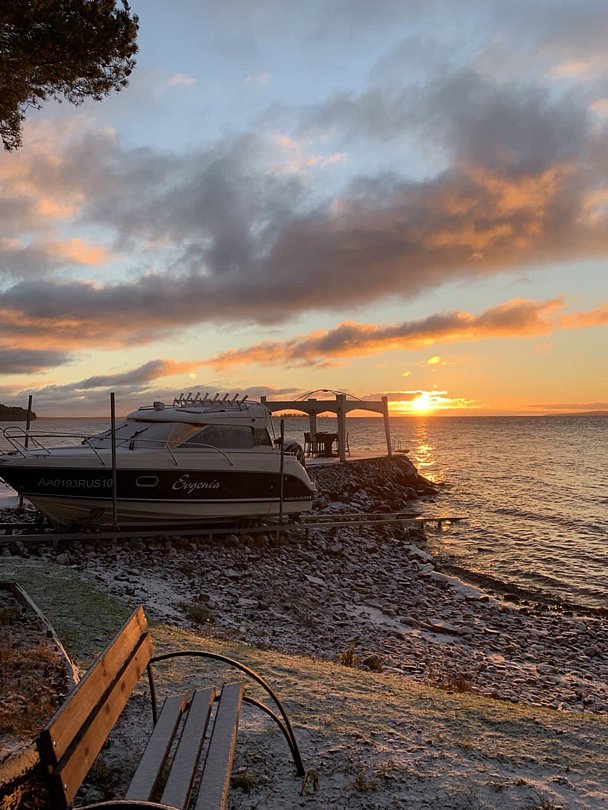 Комфортный дом категории «Комфорт с сауной» 32 м², с панорамным видом на Онежское озеро. Домик на первой береговой линии, до 100 метров от берега.