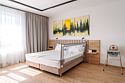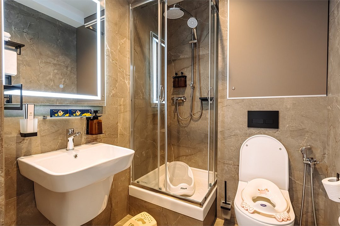 Просторные однокомнатные Апартаменты, которые отлично подходят для проживания с детьми. В апартаментах есть все для комфортного проживания: полноценная кухня, модульные кровати (твин/дабл), диван-кровать, вместительный шкаф, гладильная доска с утюгом, большая ТВ-панель, кондиционер, рабочая зона, бесплатный Wi-Fi, индивидуальный сейф. В ванной комнате - душевая зона, большое зеркало с подсветкой и феном, тёплые полы. Для гостей апартаментов подготовлены косметические средства и тапочки. Номера укомплектованы необходимыми мелочами для комфортного отдыха с детьми: детская посуда, заглушки на розетки, силиконовые уголки на мебель, детская косметика. Дополнительно предоставляется по запросу: детская ванночка, горка для купания, ступенька к раковине, горшок, сиденье на унитаз, кроватка-манеж, слюнявчик, стульчик для кормления, халат, защитные бортики на кровать.Услуги и удобства