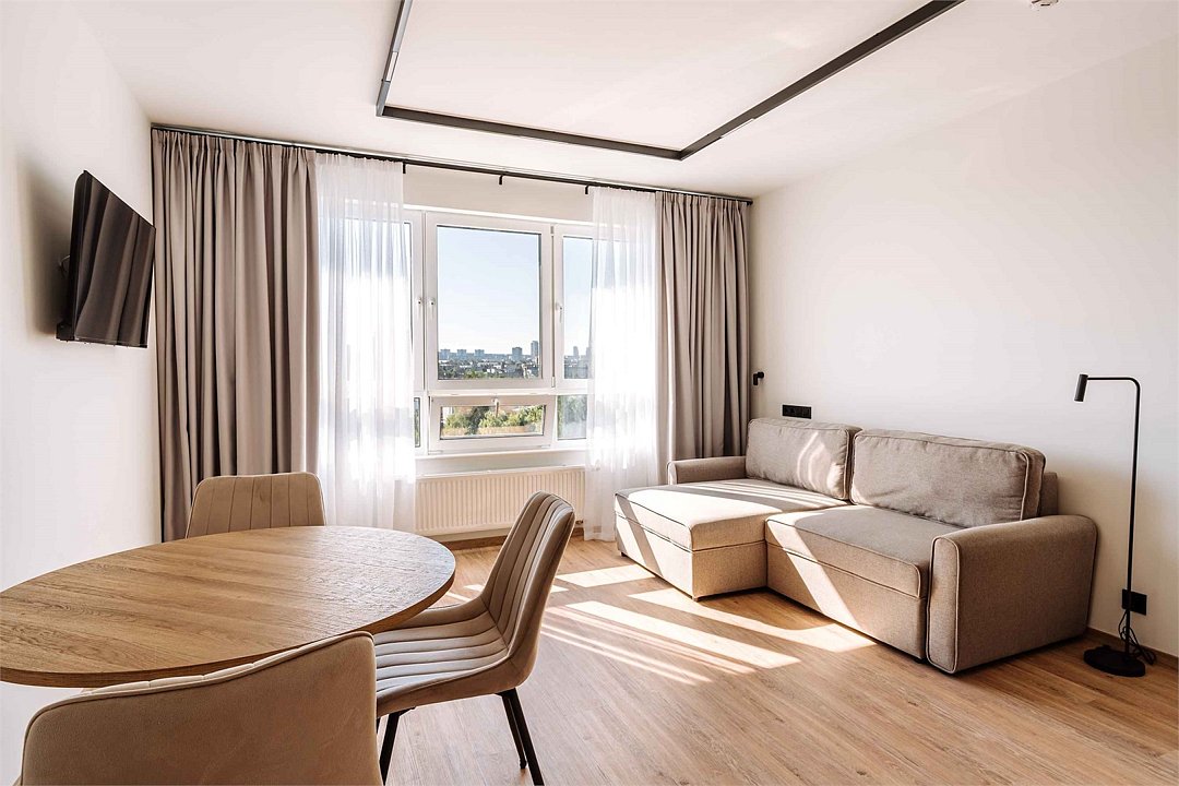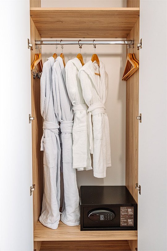 В апартаментах есть все для комфортного проживания: полноценная кухня, обеденный стол со стульями, модульные кровати (твин/дабл), диван-кровать, вместительный шкаф-гардеробная, гладильная доска с утюгом, большая ТВ-панель в спальне и в гостиной, индивидуальный сейф. В номерах Люкс дополнительно к основной ванной комнате есть гостевой санузел — это особенно удобно при размещении нескольких гостей. Ванная комната оснащена душевой зоной и ванной, большим зеркалом с подсветкой и феном. Для гостей апартаментов подготовлены расширенные косметические наборы, тапочки и халаты.Услуги и удобства