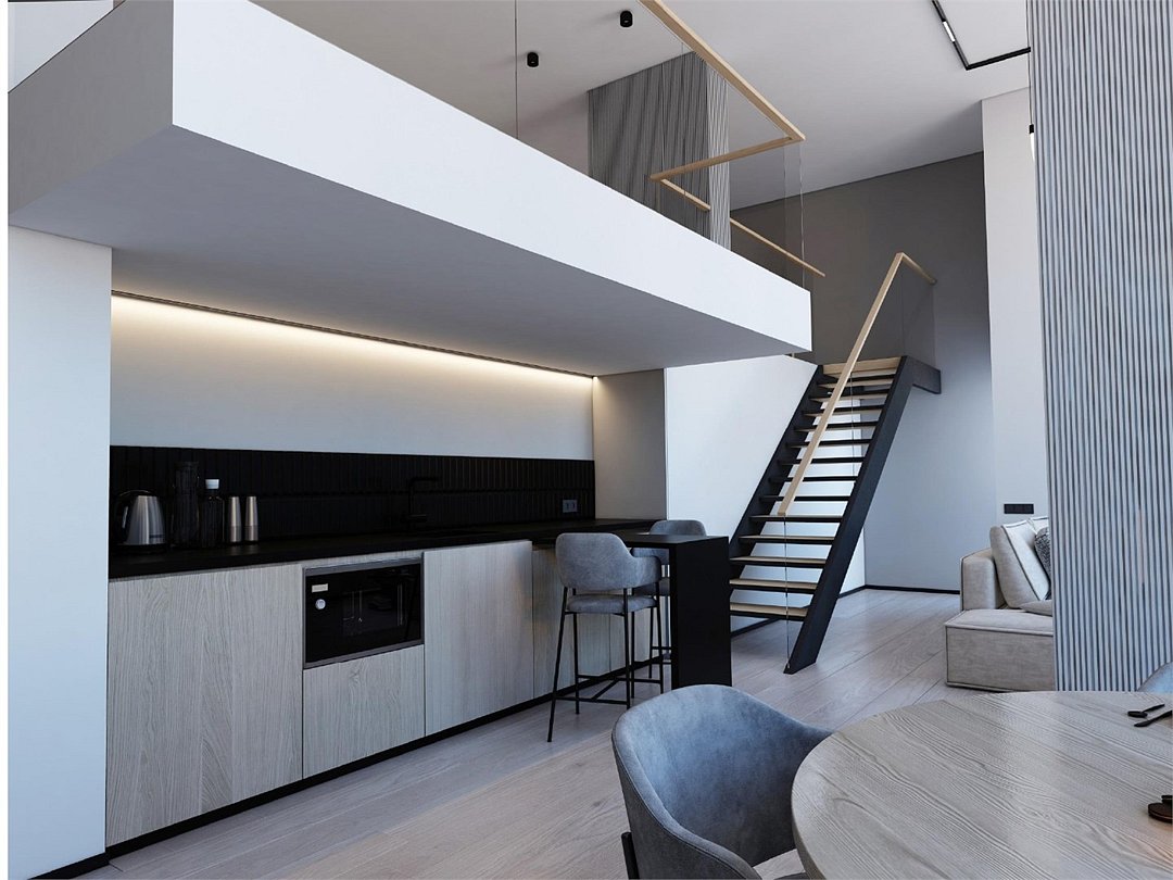 Двухуровневые Апартаменты "Пентхаус" прекрасно подойдут как для краткосрочного, так и для долгосрочного проживания. Панорамные окна открывают невероятные виды на центр города и Онежское озеро, наполняя апартаменты светом и создавая ощущение простора. Высота потолка в номере – 5,5м Площадь апартаментов - 75 кв.м. Комфортное размещение до 4 человек. Для нижнем уровне для гостей предусмотрены: рабочая зона, угловой диван, обеденный стол со стульями, вместительный шкаф-гардеробная, гладильная доска с утюгом, большая ТВ-панель, индивидуальный кондиционер, сейф. На верхнем этаже расположена спальная зона с модульными кроватями и мягкая зона для для отдыха. Для комфортного проживания Пентхаус оснащен полноценной кухней: индукционной плитой, микроволновой печью, мини-холодильником с морозильной камерой, капсульной кофе-машиной, электрическим чайником, мощной вытяжкой, набором посуды и столовых приборов. В апартаментах данной категории дополнительно к основной ванной комнате есть гостевой санузел. Ванная комната оснащена душевой зоной и ванной, большим зеркалом с подсветкой и феном. ! Реальный вид номера может незначительно отличаться от представленных изображений.Услуги и удобства