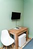 Оснащение — одна двуспальная кровать, прикроватная тумбочка, телевизор, столик, стул. Предоставляются полотенца, постельное белье.