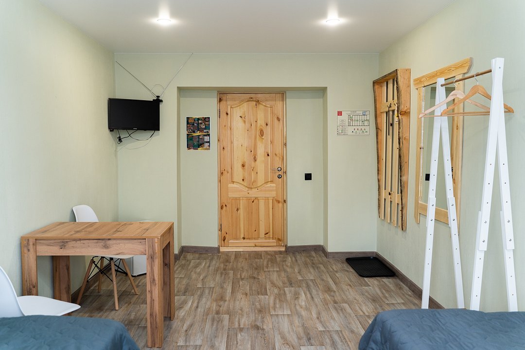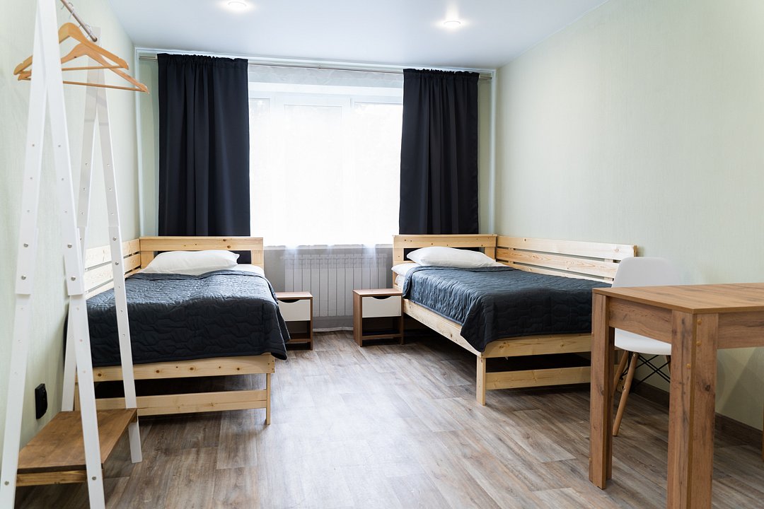 Оснащение — две кровати, прикроватная тумбочка, телевизор, холодильник, столик, стул, фен в ванной комнате. Предоставляются полотенца, постельное белье.