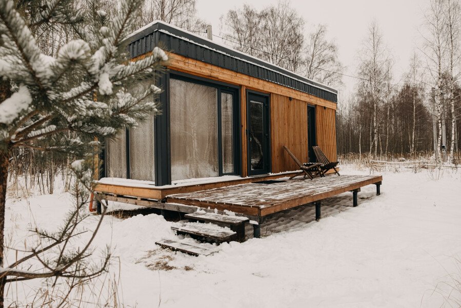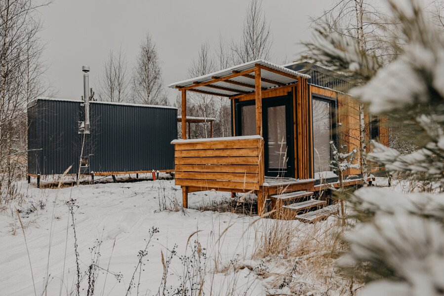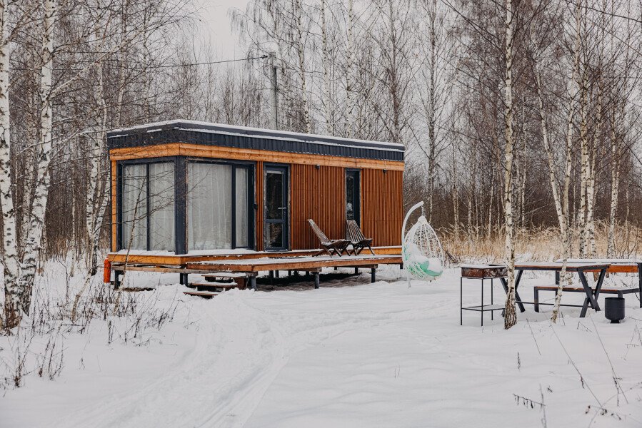 Романтический тёплый домик-юнит на дикой природе для двоих. Данный домик находится в лесу.