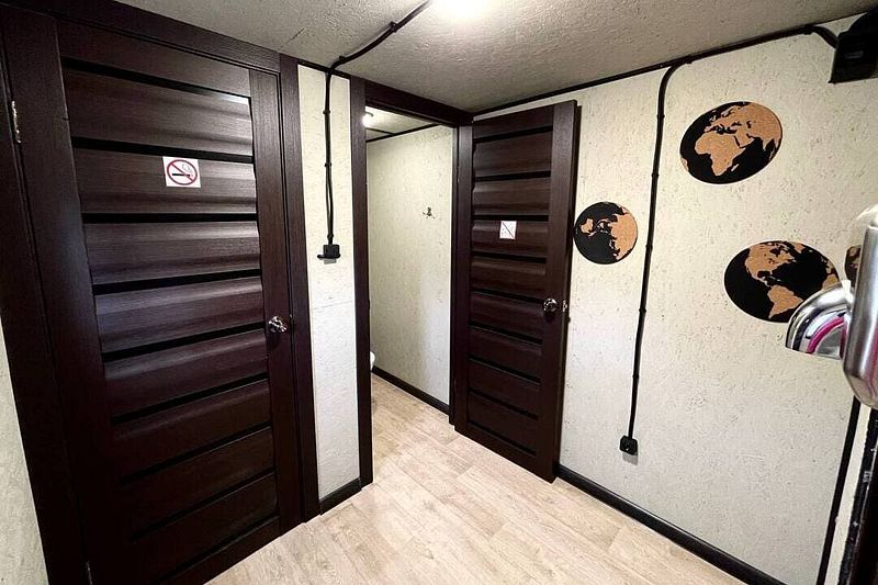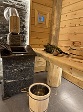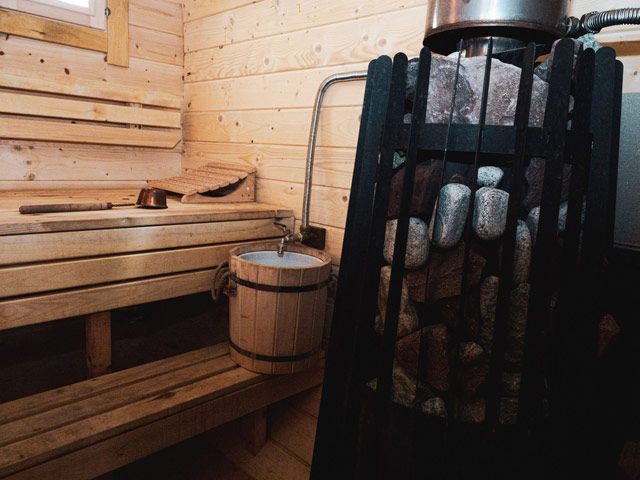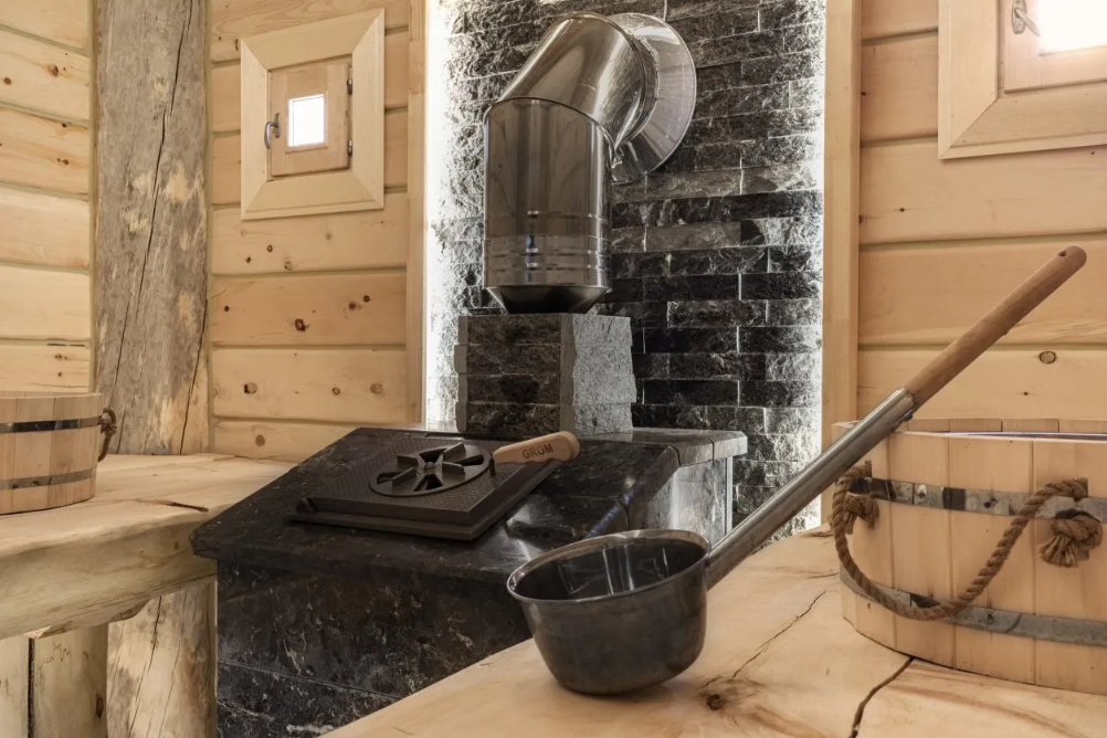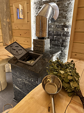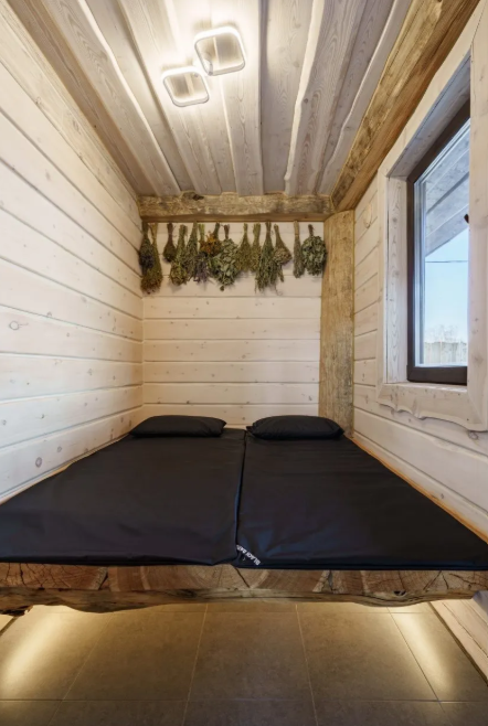 Сердце бани — просторная парная с массивной печью в 800 кг, которая обеспечивает равномерный прогрев и создает идеальный микроклимат для банных процедур. Рядом расположена уютная комната релаксации, где на полках из натурального дерева расстелены гречишные матрасы, а воздух наполнен ароматами целебных трав.