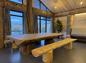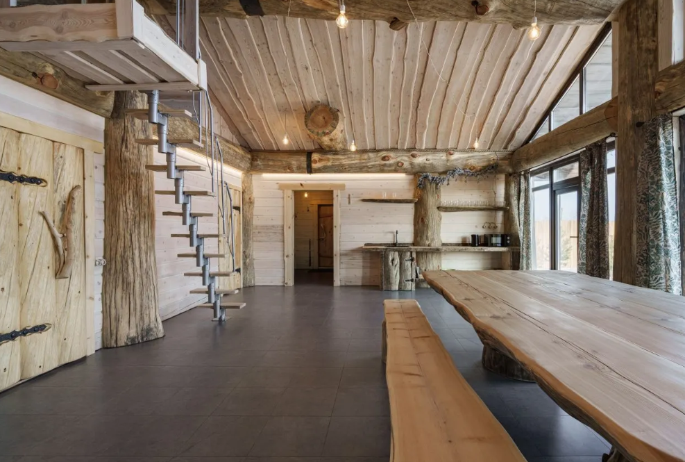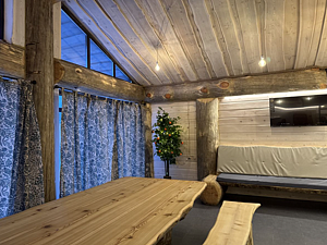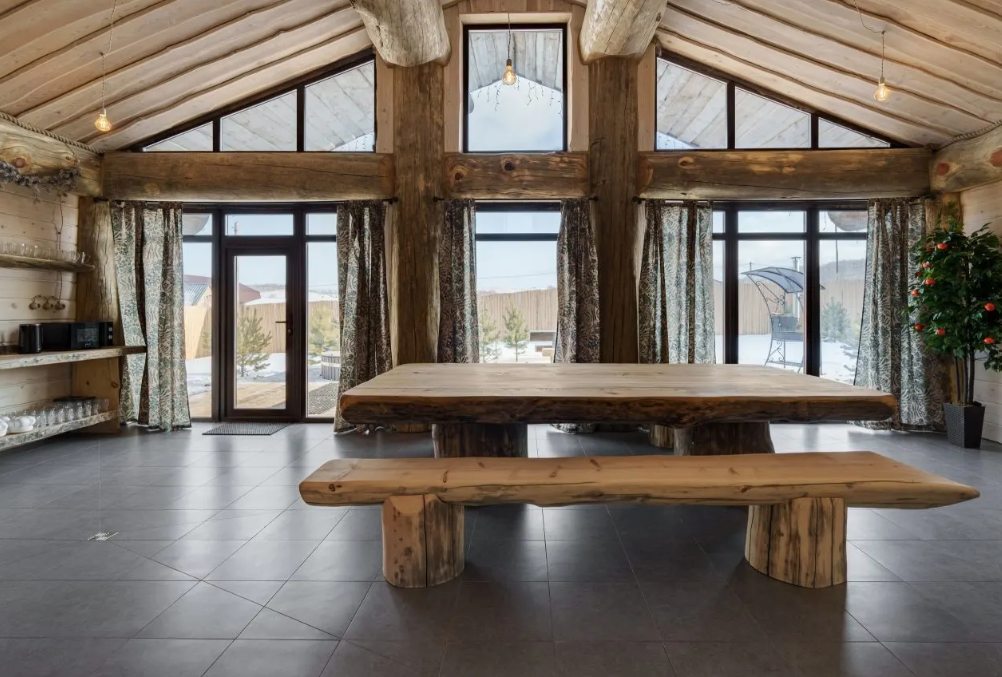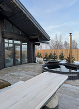 Инфраструктура: купель, зона отдыха, полотенца, простыни, душ, дубовые веники, халаты, чай/угощенияМинимальное время аренды: 4 часаВеличественная баня из трехсотлетнего кедра, созданная по авторскому проекту Post & Beam , представляет собой настоящий дворец релаксации и оздоровления. Массивные стены из благородного дерева создают особый микроклимат, наполняя воздух целебными фитонцидами и даря неповторимый аромат северной тайги. В центре банного комплекса возвышается монументальный стол из лиственницы весом 700 кг — настоящий трон для дружеских посиделок и праздничных застолий. Его основательность и природная красота создают атмосферу древнего славянского гостеприимства.