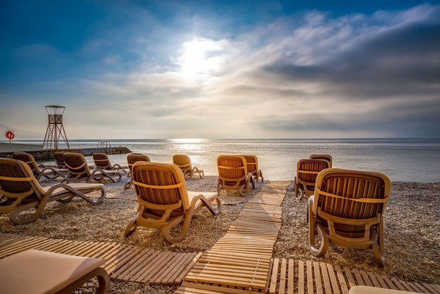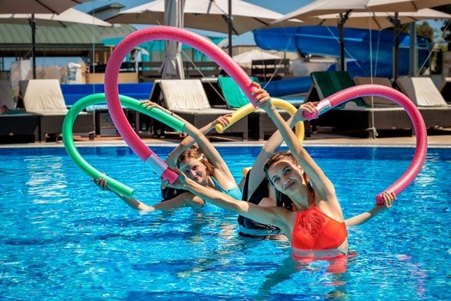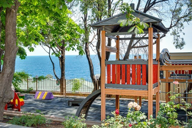• Просторная аквазона с водными горками, основным и дополнительным открытыми бассейнами с морской водой.