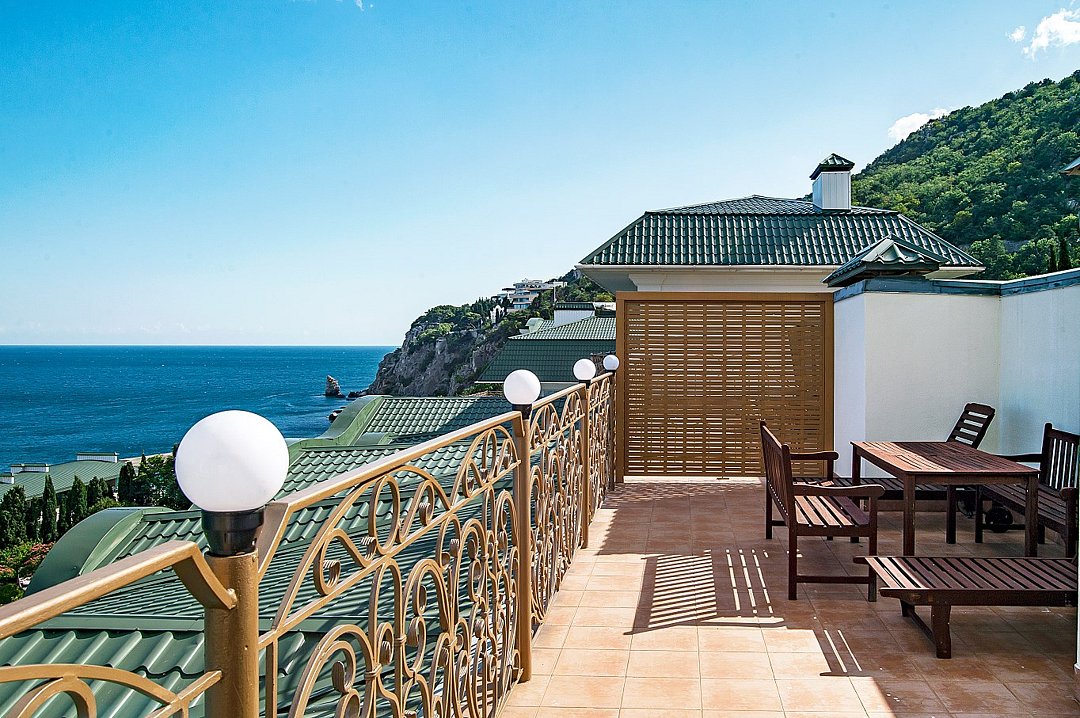• Панорамный ресторан «На Крыше» находится у самого моря, возвышаясь над линией прибоя на 50 метров. Благодаря такому расположению, он может похвастаться не только лучшим в Крыму грилем, незабываемой атмосферой, но и потрясающими видами на окрестности Ялты.