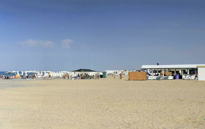 Тип пляжа: песчано-галечныйПляжная мебель / Лежаки и зонтики