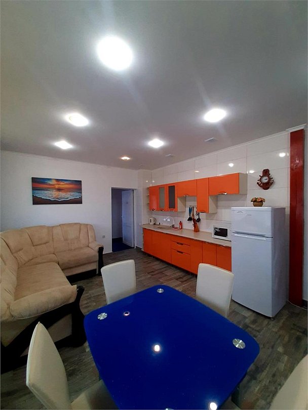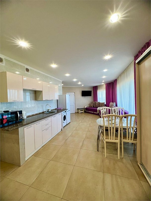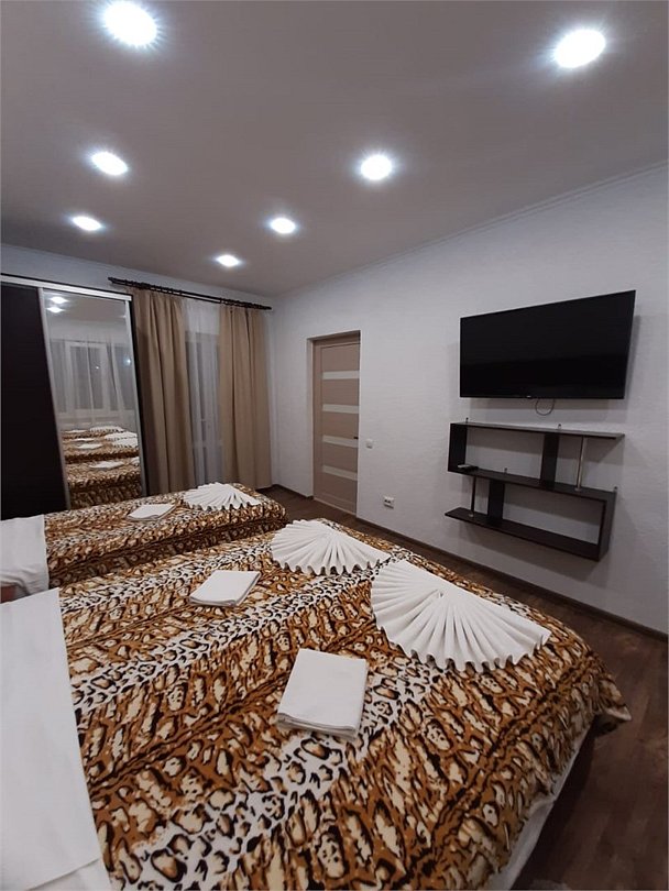 2х комнатные апартаменты 70м2, отличный номер для большой семьи, наличие спальных мест - до 9-ти. Телевизоры в каждой комнате, кондиционер. Кухня в номере укомплектована всем необходимым для готовки. Высокий холодильник, стиральная машинка, большой санузелУслуги и удобства