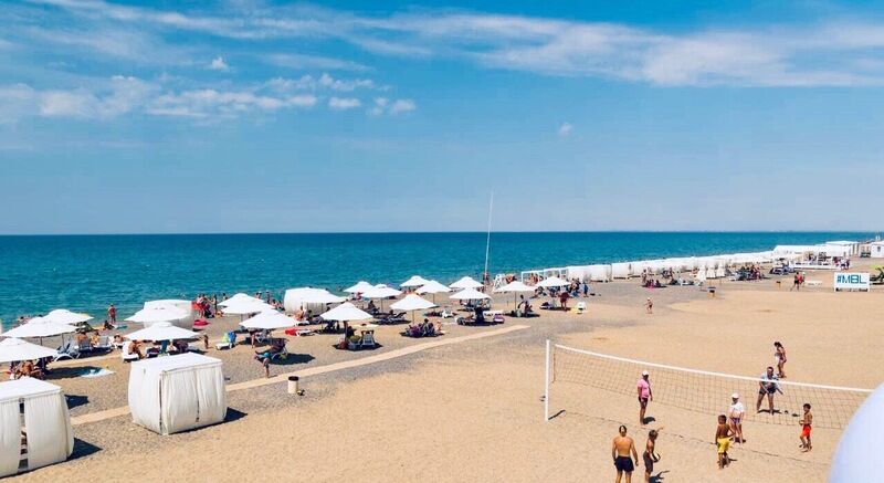 Отель расположен в 400 м от шикарного пляжа « Палуба». Это пляж современного уровня оформлен в элегантном стиле. Здесь предусмотрено все : туалеты, душевые, теневые навесы, дорожки, зонты и шезлонги. Особенно атмосферно на берегу смотрятся бунгало. Их белоснежные стены развиваются словно паруса.