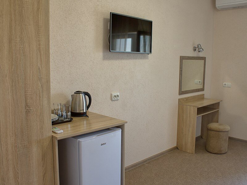 телевизор, Wi-Fi, холодильник, кондиционер, фен, система безопасности, санузел, банные полотенца, балкон, двуспальная кровать, шкаф для одежды, вешалки, журнальный столик, зеркало, мебельный гарнитур, набор посуды, сейф, унитаз, раковина, ковровое покрытие, душ, вид на море, кулер на этаже, вид во двор, стаканы, столовые приборы, туалетный столик, стол, тумба, туалетный столик, туалет, сушилка для белья, цифровое тв, москитная сетка, пуфик, фумигатор, уборка номера, услуги прачечной (платно), вешалки-плечики, мыло, затемняющая штора, без питомцевВ номере