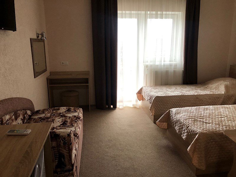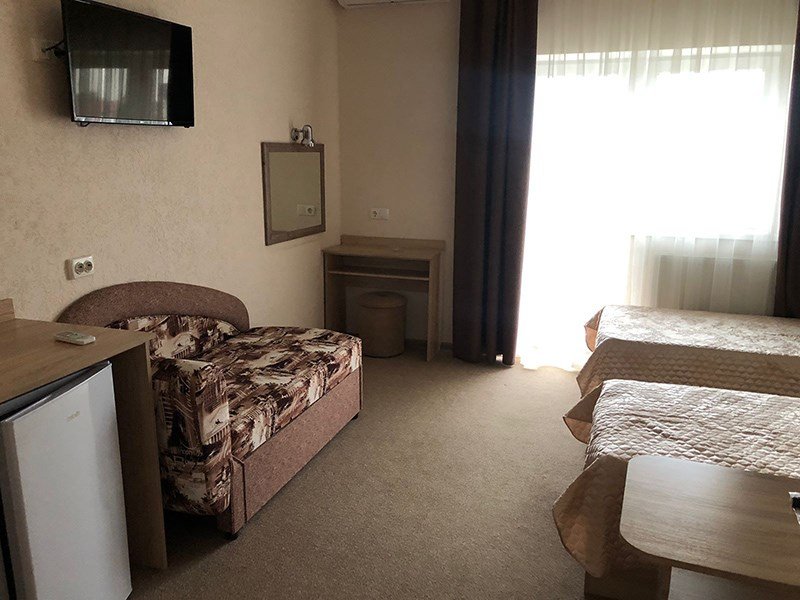 Прекрасный семейный номер,который так же подойдет компании друзей.С выходом на балкон ,на котором можно встретить незабываемый крымский закат.Услуги и удобства
