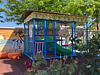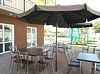 Общая кухня оборудована варочной панелью, холодильником, чайником, микроволновой печью и набором посуды. Обеденные зоны расположены в помещении и на открытом воздухе.