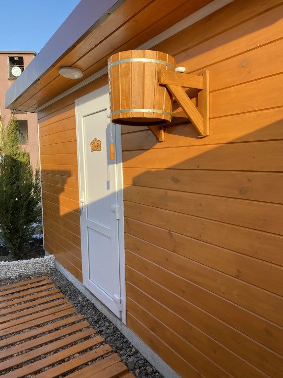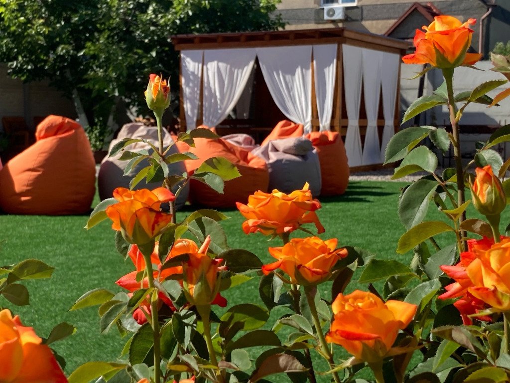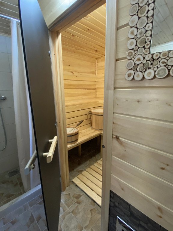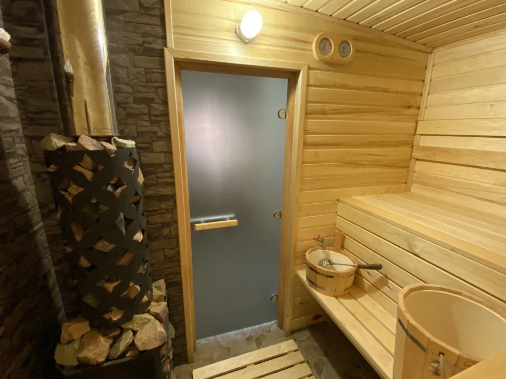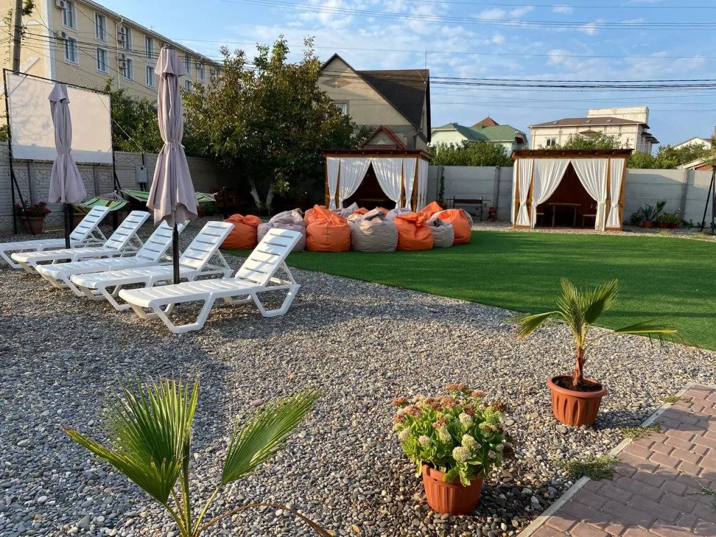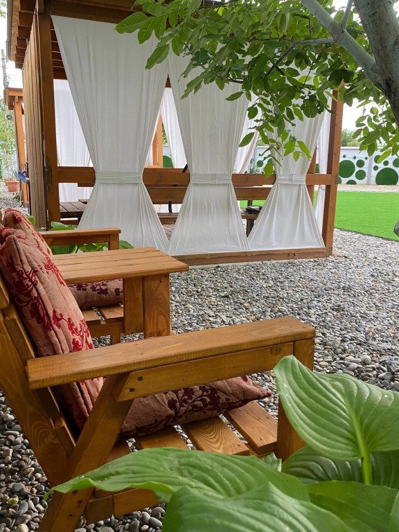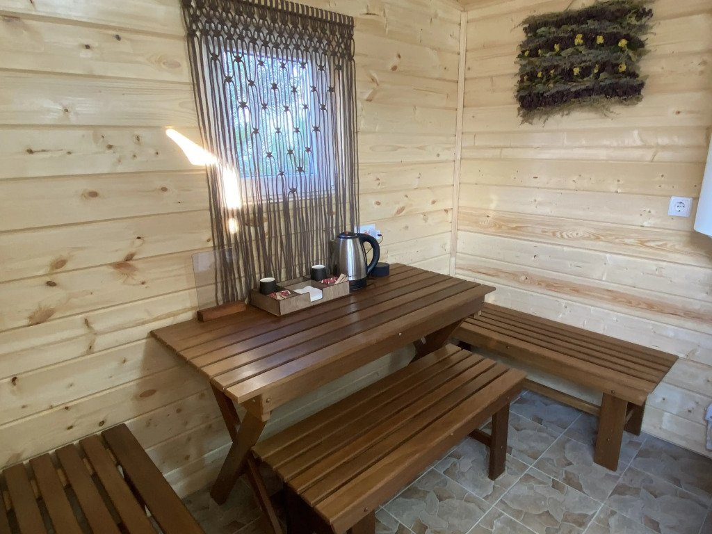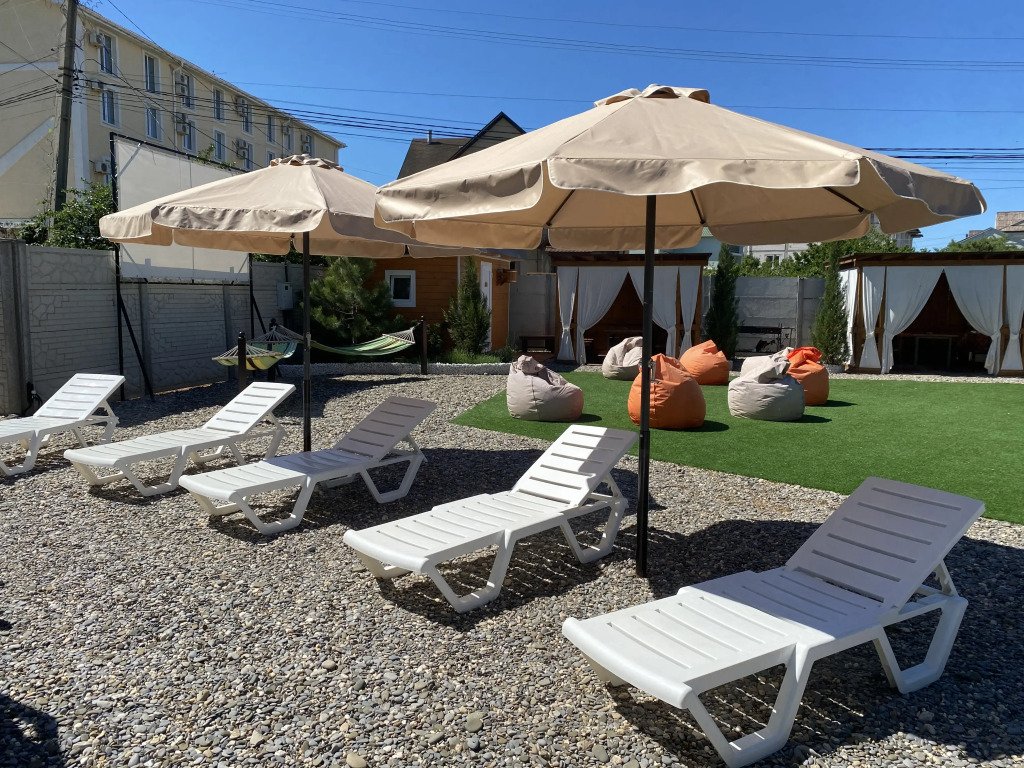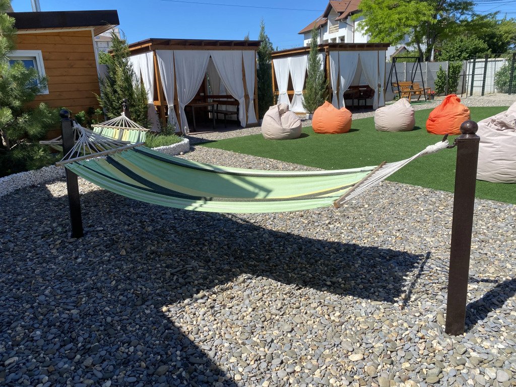 На территории установлены шезлонги под зонтиками и подвесные кресла, беседки и мангальная зона. Имеется баня на дровах.